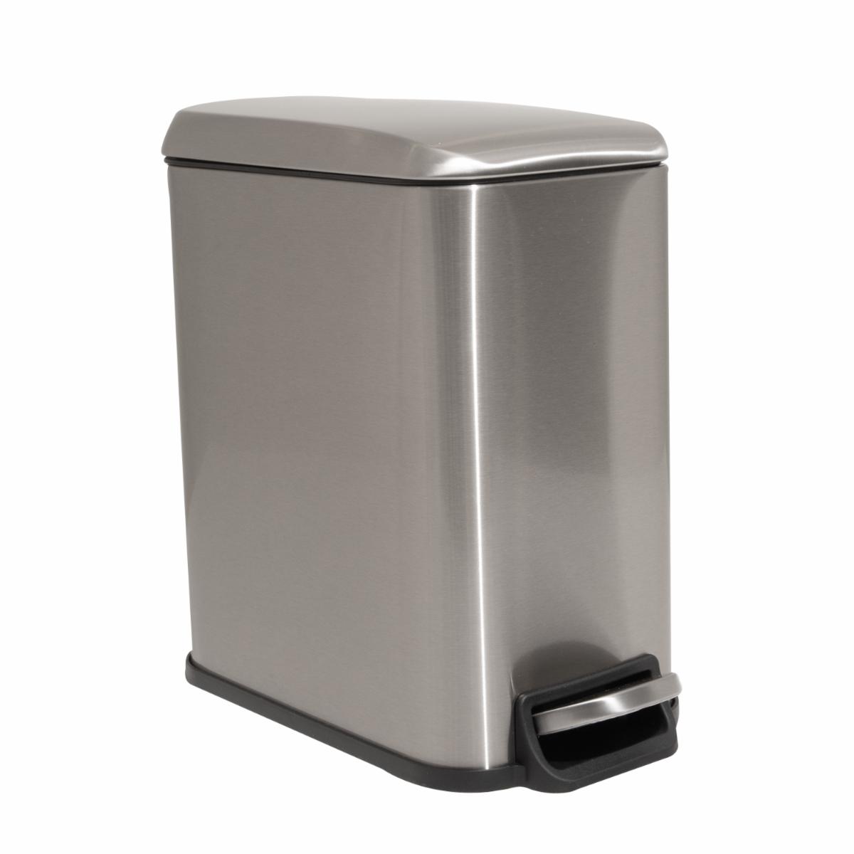 Este basurero de diseño compacto con tapa de apertura mediante botón es ideal para baños o cocinas pequeñas, ofreciendo funcionalidad y estilo sencillo.