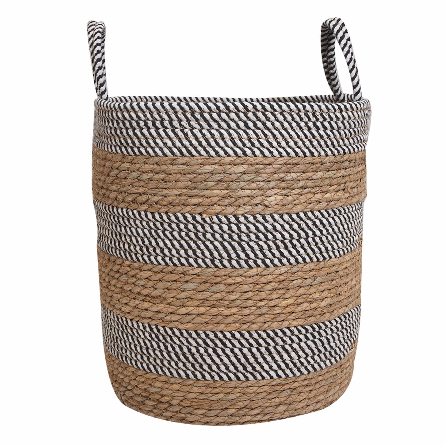 Cesta De Mimbre Diseño Color Natural Líneas Negras Pequeña FREE HOME 27X27X18 Cm
