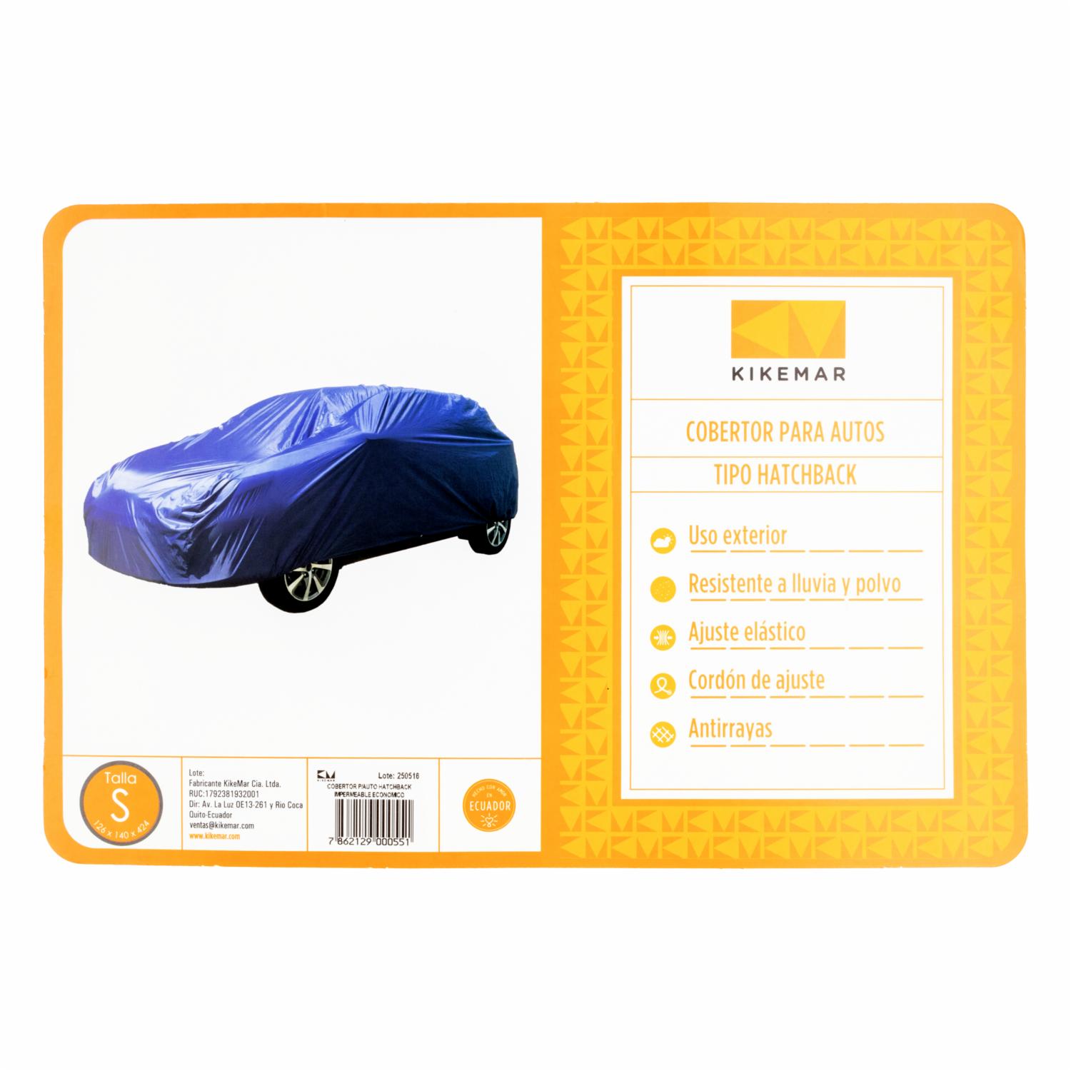 Cobertor Impermeable Económico Vehículos Hatchback KIKEMAR Universal – KIKEMAR. Disponible en nuestros locales. Precio y stock pueden variar según la tienda.
