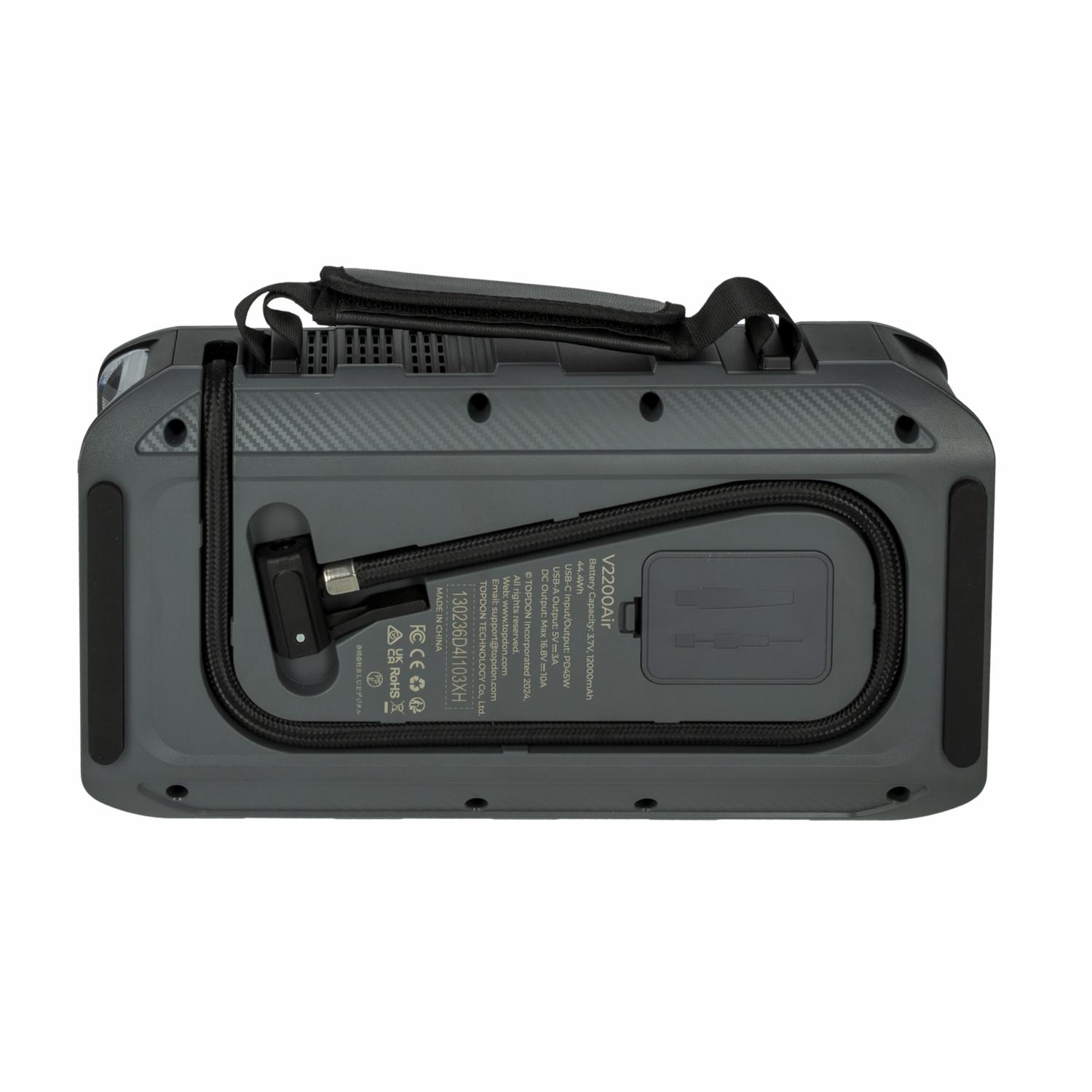 V2200Air, la solución integral definitiva para las emergencias de cualquier propietario de vehículo. Este versátil dispositivo le permite arrancar su coche, inflar las llantas, cargar sus dispositivos e iluminar su entorno fácilmente. Con una impresionante corriente máxima de 2200 A, puede arrancar motores de hasta 8.0 L de gasolina o 6.0 L de diésel en tan solo 2 segundos. La bomba de aire integrada infla las llantas en menos de 3 minutos, lo que le garantiza volver a la carretera rápidamente