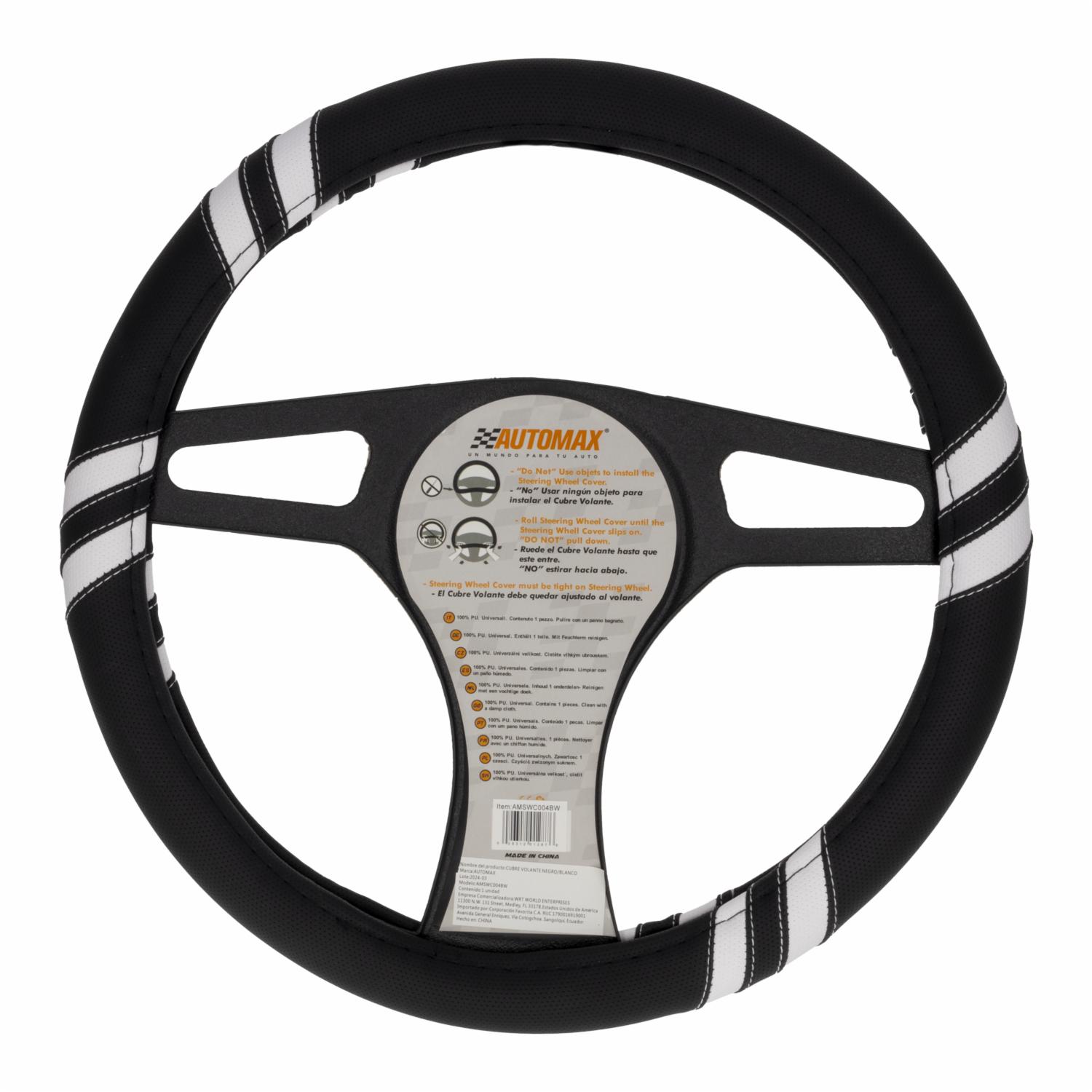 Cubre Volante Negro Blanco 04 AUTOMAX Unidad – AUTOMAX. Disponible en nuestros locales. Precio y stock pueden variar según la tienda.