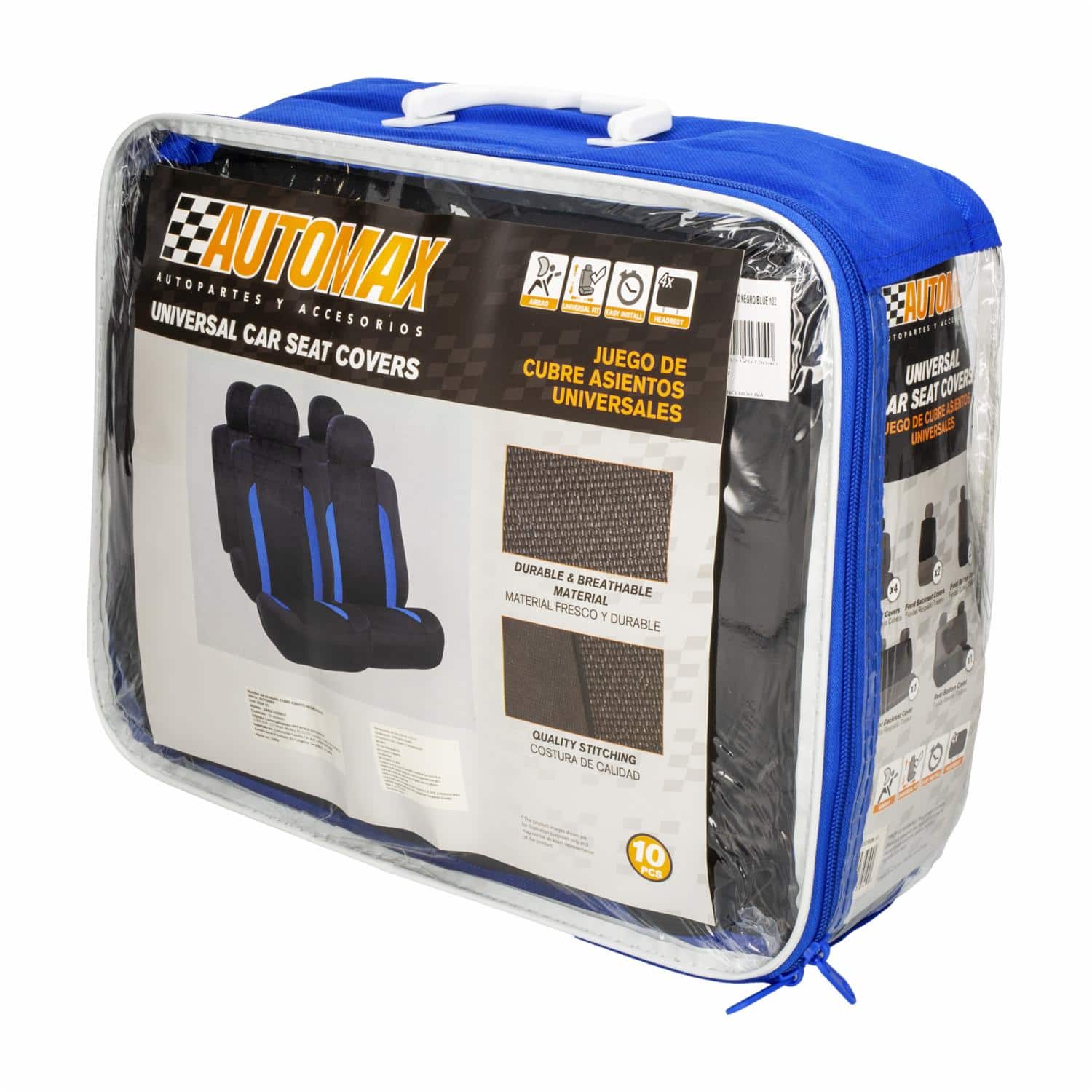 Cubre Asiento Negro Azul 102 AUTOMAX 10 Piezas – AUTOMAX. Disponible en nuestros locales. Precio y stock pueden variar según la tienda.