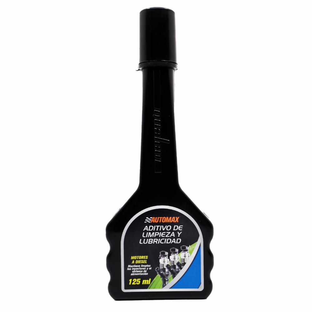 ADITIVO DE LIMPIEZA Y LUBRICIDAD AUTOMAX: Aditivo para Diesel limpieza y lubricidad Automax Aditivo de limpieza y mejorar de lubricidad del Diesel. 125 mL Botella de 125 mL de uso directo al tanque de Diesel. Marca AUTOMAX. Ayuda a mantener limpias las líneas de alimentación del combustible y los inyectores. Mejora la lubricidad del Diesel. Aditiva hasta 16 galones de combustible. Uso recomendado de una botella en cada tanqueada.