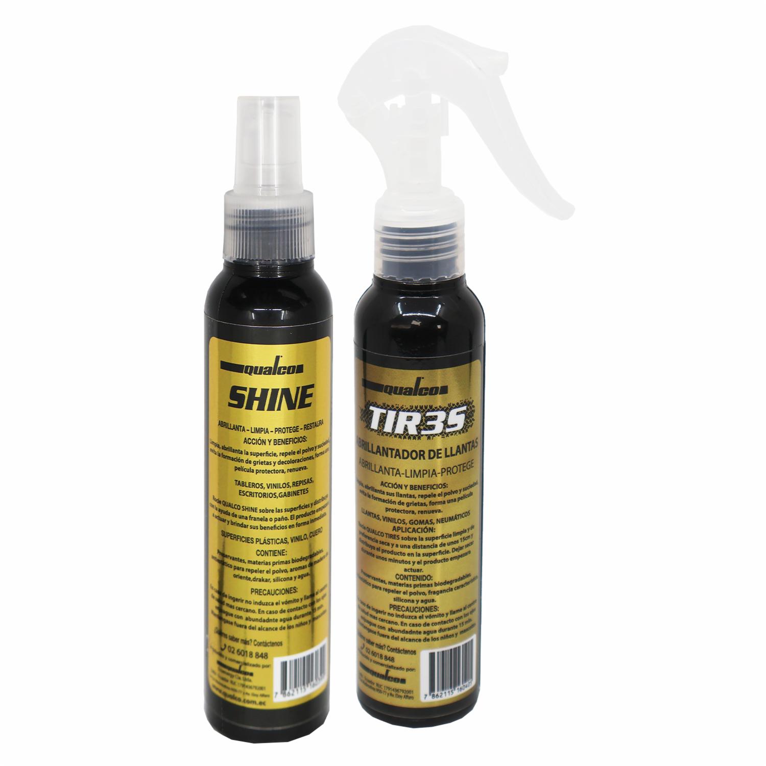 Kit Automotriz Minikit 100 Ml 1 Silicona Shine 100 Ml + 1 Tires Abrillantador De Llantas 100 Ml QUALCO Kit