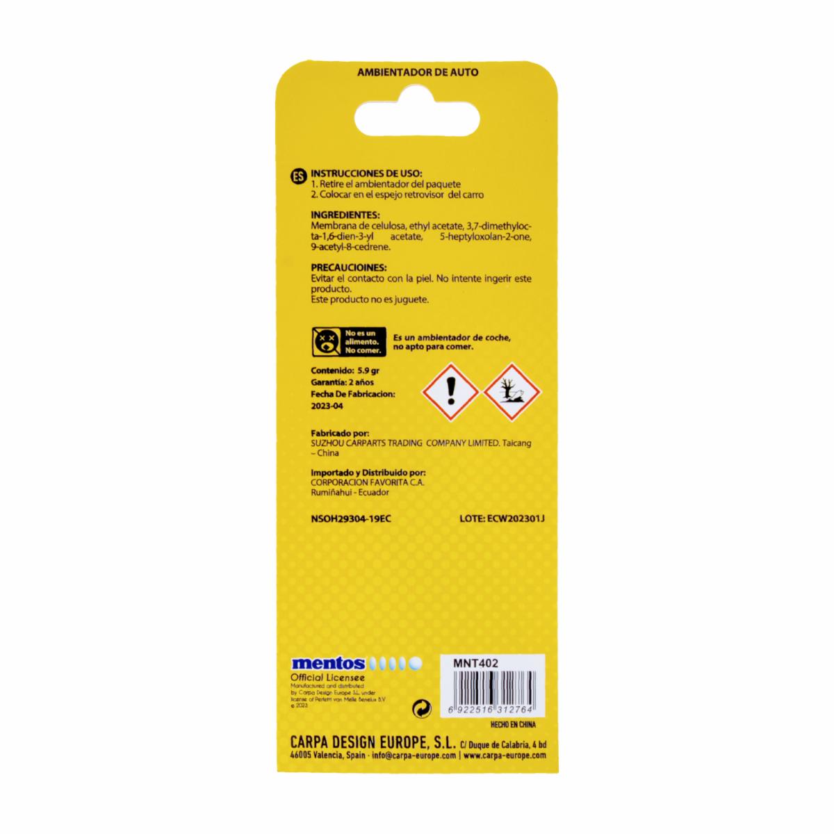 Ambiental Para Auto Papel Fragancia Arco Iris MENTOS 5.9 G