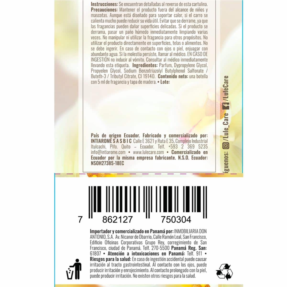 Difusor Ambiental Para Auto Fragancia Loving Vainilla LULË AROMË 5 Ml