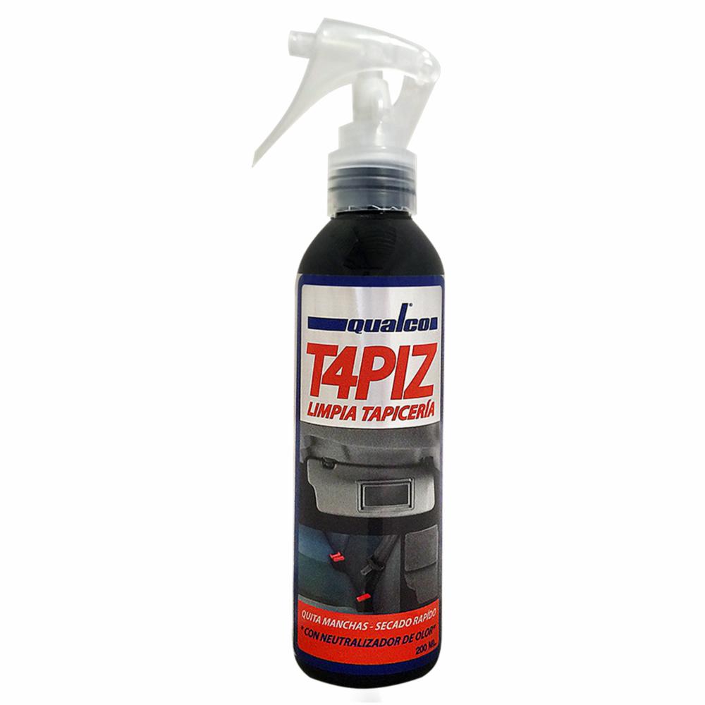 QUALCO T4PIZ: Limpia tapicería. Producto integral que quita manchas y secado rápido. Diseñado para remover las manchas en la tapicería, asientos, alfombras, cubierta superior interna de los autos y demás fibras textiles. Elaborado con materias primas amigables con el medio ambiente y con las manos