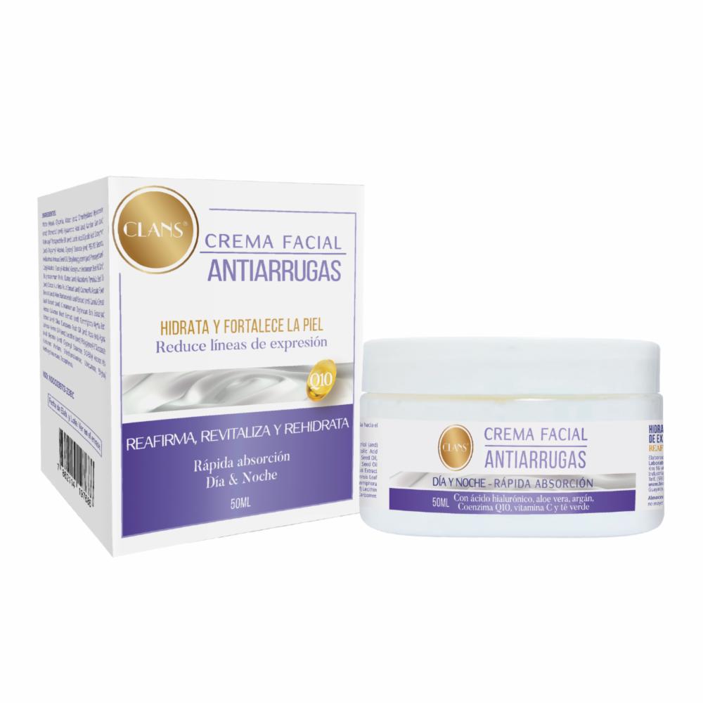 Crema Facial Antiarrugas CLANS 50 Ml – CLANS. Disponible en nuestros locales. Precio y stock pueden variar según la tienda.