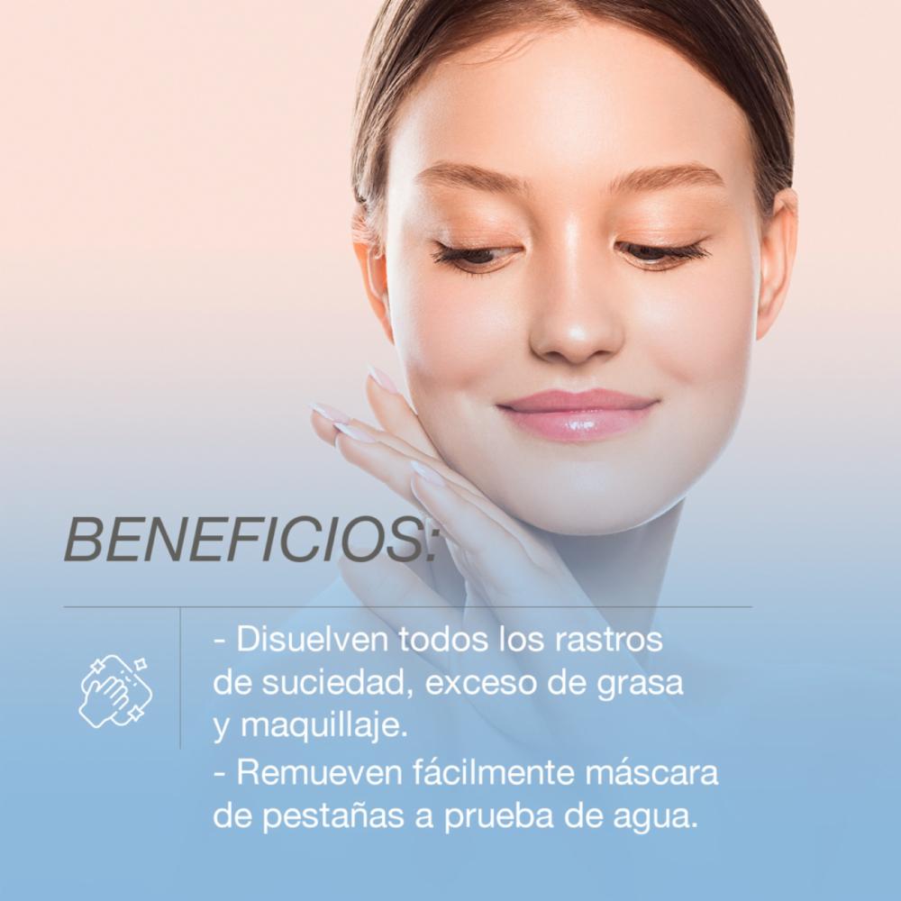 Toallitas desmaquillantes NEUTROGENA®, efectivas para disolver todo rastro de suciedad, grasa y maquillaje a prueba de agua, sin dejar residuos