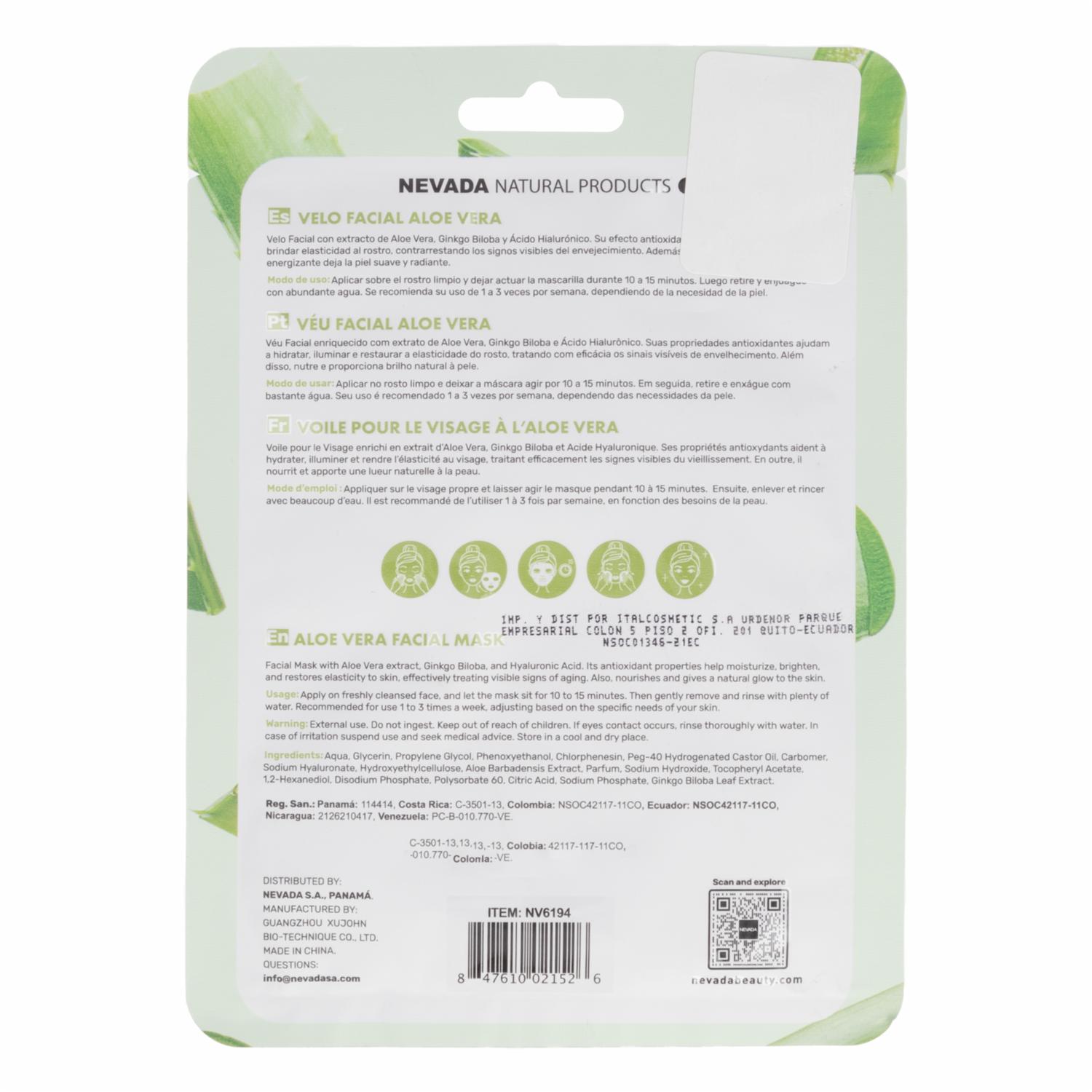 Mascarilla Facial De Con Ácido Hialurónico Aloe Vera NEVADA Unidad