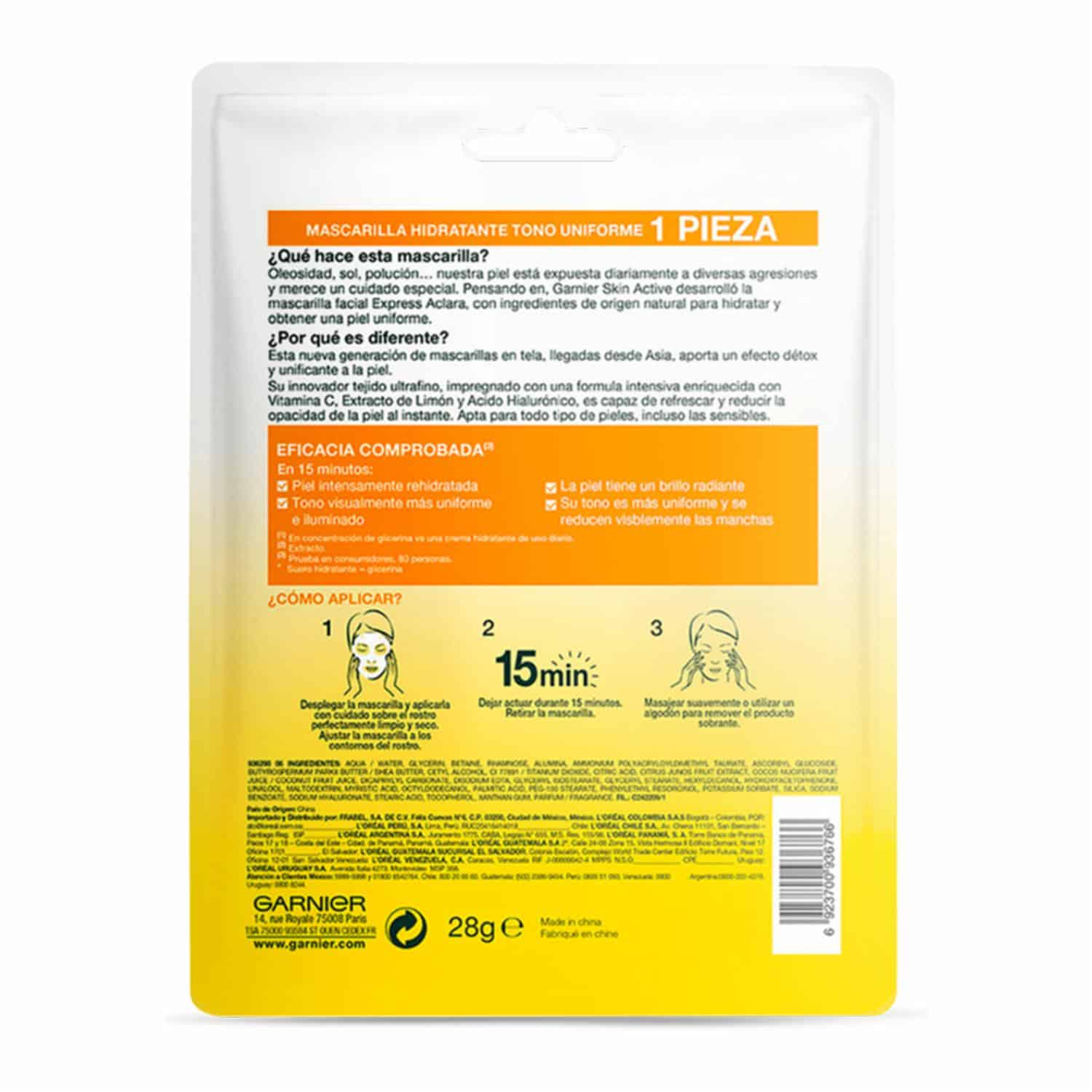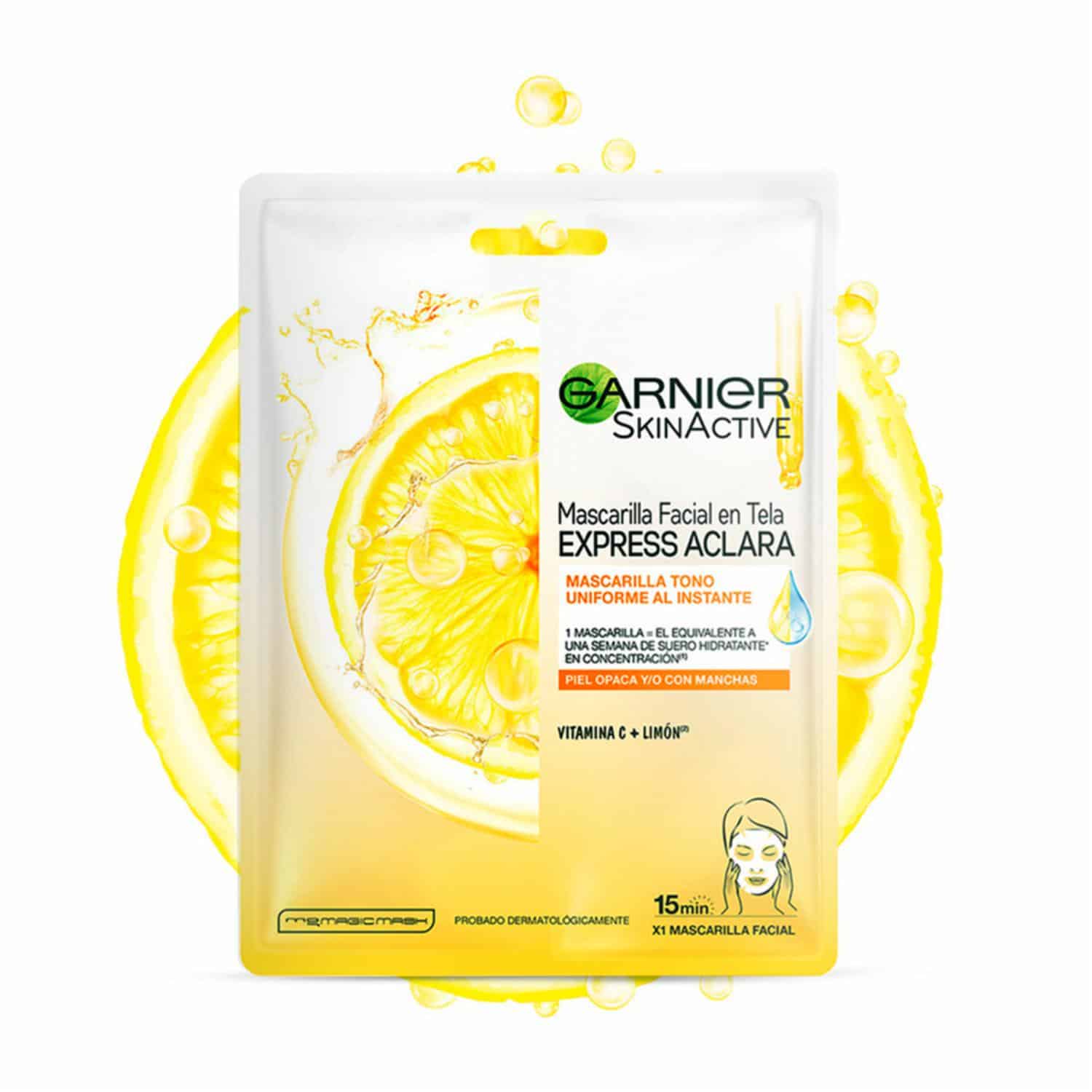 Mascarilla Facial En Tela Tono Uniforme De Vitamina C + Limón GARNIER SKIN ACTIVE 1 Pza 28 G