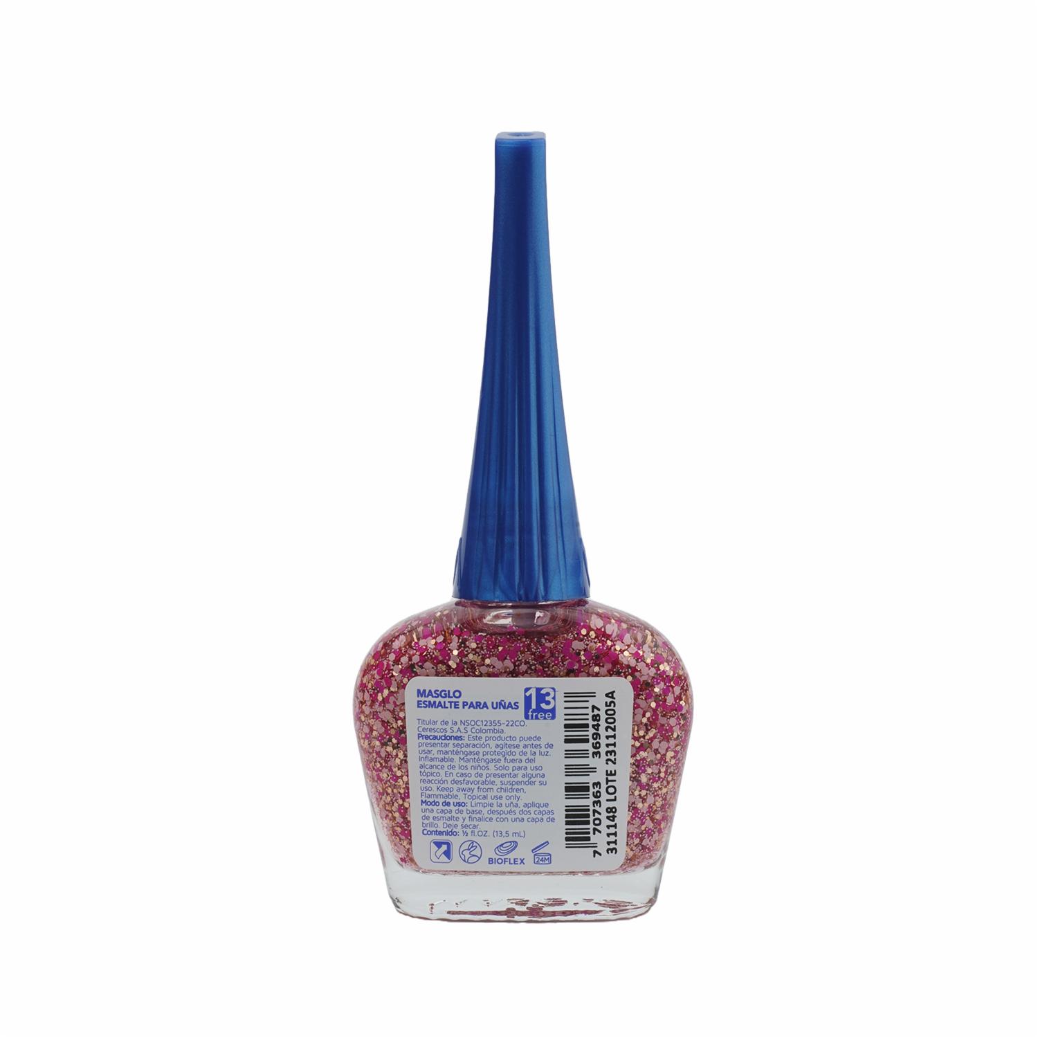 Esmalte De Uñas Brillo Con Partículas Rosa MASGLO 13.5 Ml