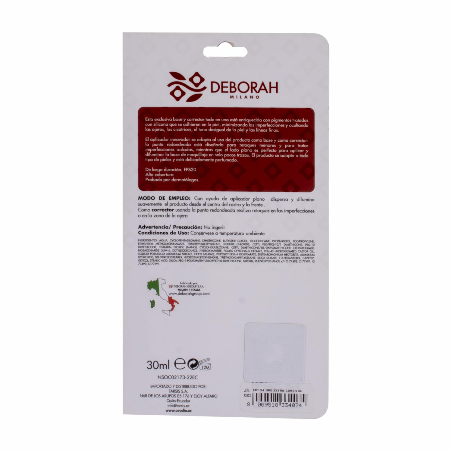 Base De Maquillaje 24 Ore Extra Cover Found Apricot DEBORAH MILANO 30 Ml