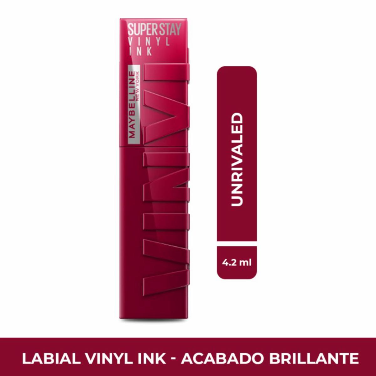 Labial Líquido Vinyl Ink Acabado Brillante Tono 30 Unrivaled MAYBELLINE NEW YORK – MAYBELLINE NEW YORK. Disponible en nuestros locales. Precio y stock pueden variar según la tienda.