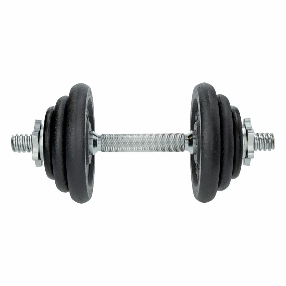 Entrena con versatilidad y fuerza en un solo set, ideal para rutina progresiva en casa o gimnasio. - Peso total combinable hasta 20kg, adaptado para distintos niveles de ejercitación - Incluye barra corta y discos de acero para personalizar la carga - Ajuste rápido mediante collarines de seguridad - Empuñaduras ergonómicas estriadas, para agarre seguro y antideslizante - Formato compacto que permite ahorrar espacio y facilita el almacenamiento