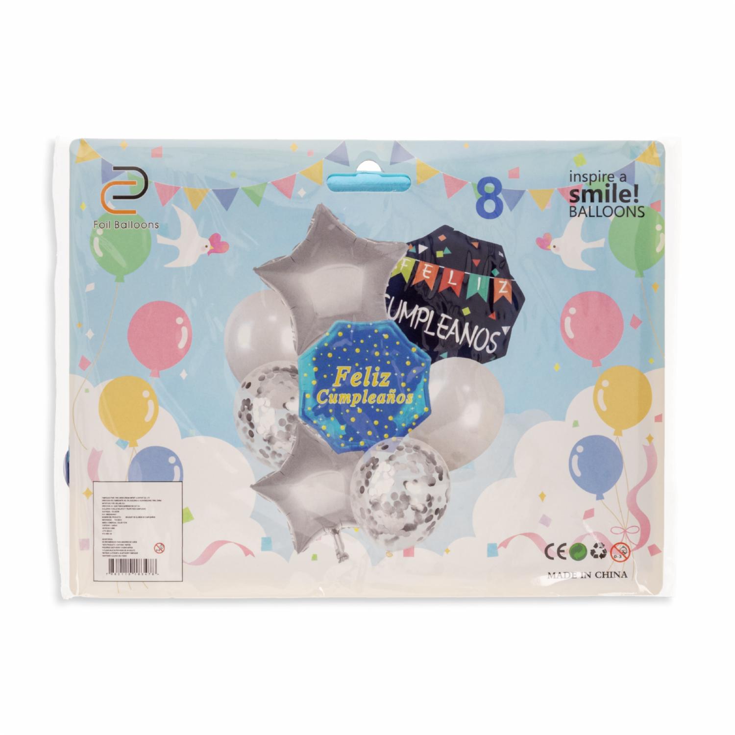 Celebra en grande con el bouquet de globos con diseño de cumpleaños en tonos azules de CELLNEL. Este set de 22" es perfecto para darle un toque festivo y elegante a cualquier fiesta de cumpleaños