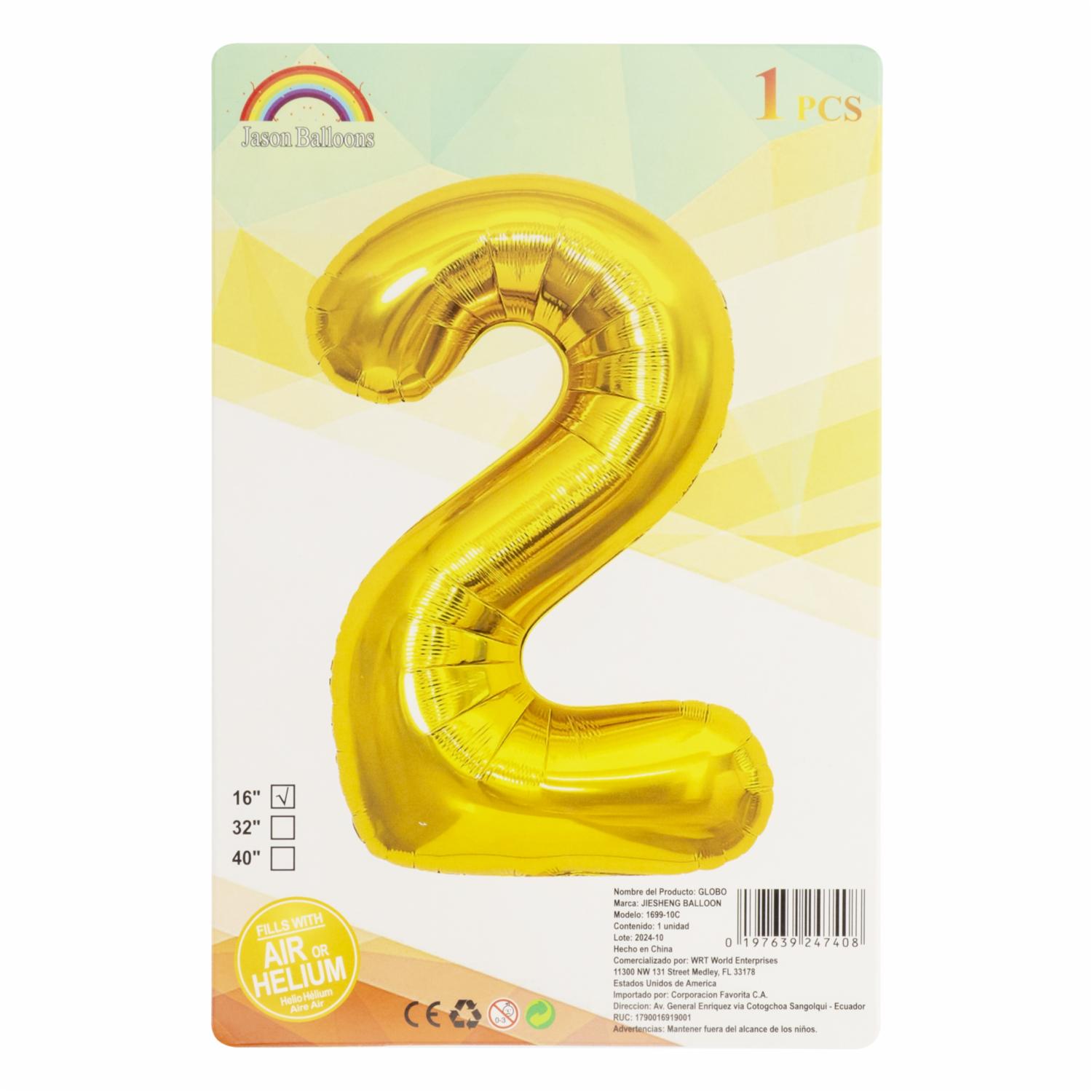 Globo Dorado JASON BALLOONS N°2 – JASON BALLOONS. Disponible en nuestros locales. Precio y stock pueden variar según la tienda.