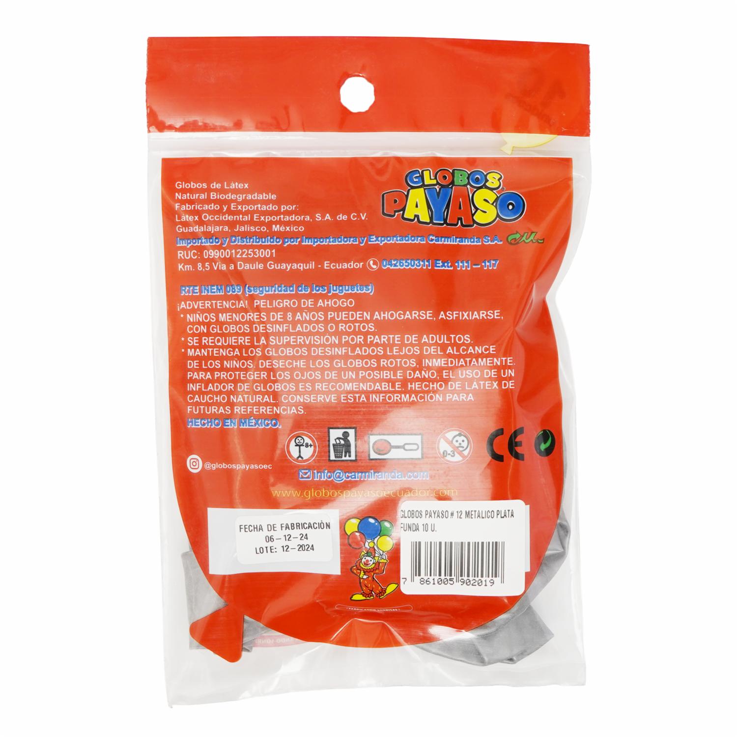 Globo Payaso N.12 Metálico Plata Funda GLOBOS PAYASO X 10 Unidades – GLOBOS PAYASO. Disponible en nuestros locales. Precio y stock pueden variar según la tienda.
