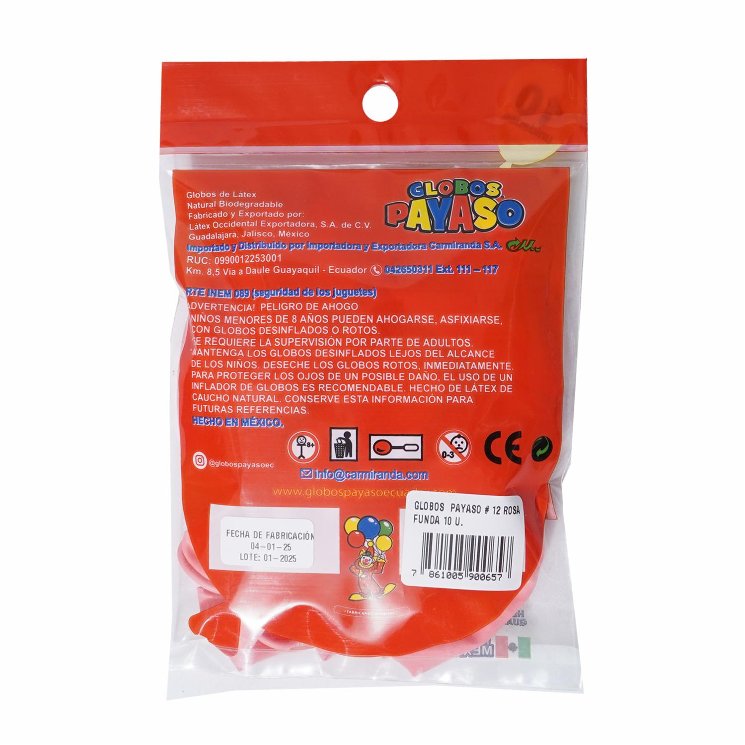 Globos N12 Rosado GLOBOS PAYASO X 10 Uds
