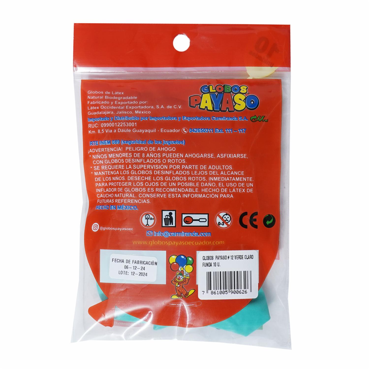 Globos N12 Verde Claro GLOBOS PAYASO X 10 Uds – GLOBOS PAYASO. Disponible en nuestros locales. Precio y stock pueden variar según la tienda.