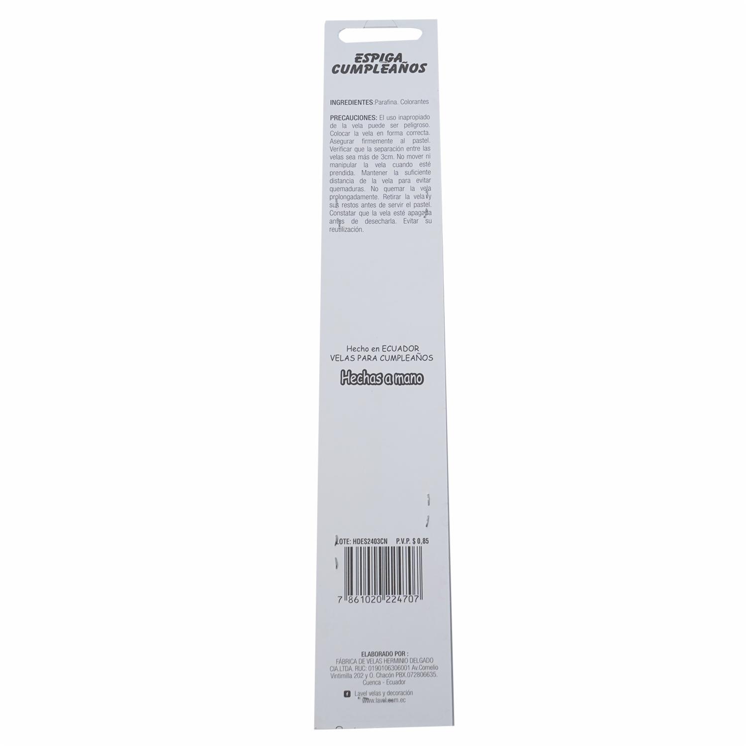 • - La vela cuenta con un efecto fluorescente, lo que la hace ideal para crear ambientes decorativos y llamativos,,- Disponible en diferentes colores, la Vela Espiga Fluorescente Herminio Delgado se adapta a cualquier tipo de decoración o evento,- Es una opción perfecta para iluminar y dar un toque especial a fiestas, bodas, cumpleaños u otras celebraciones