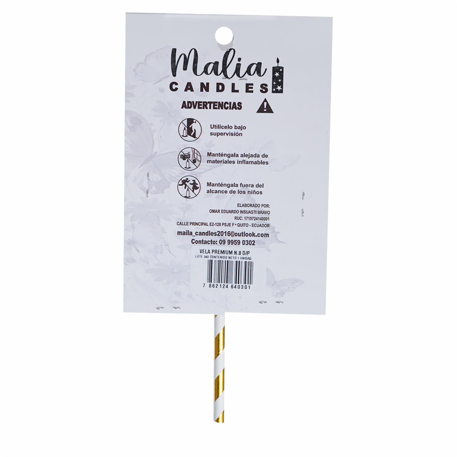 Vela Premium N8Dorado Con Plata MALIA CANDLES 19 X 8