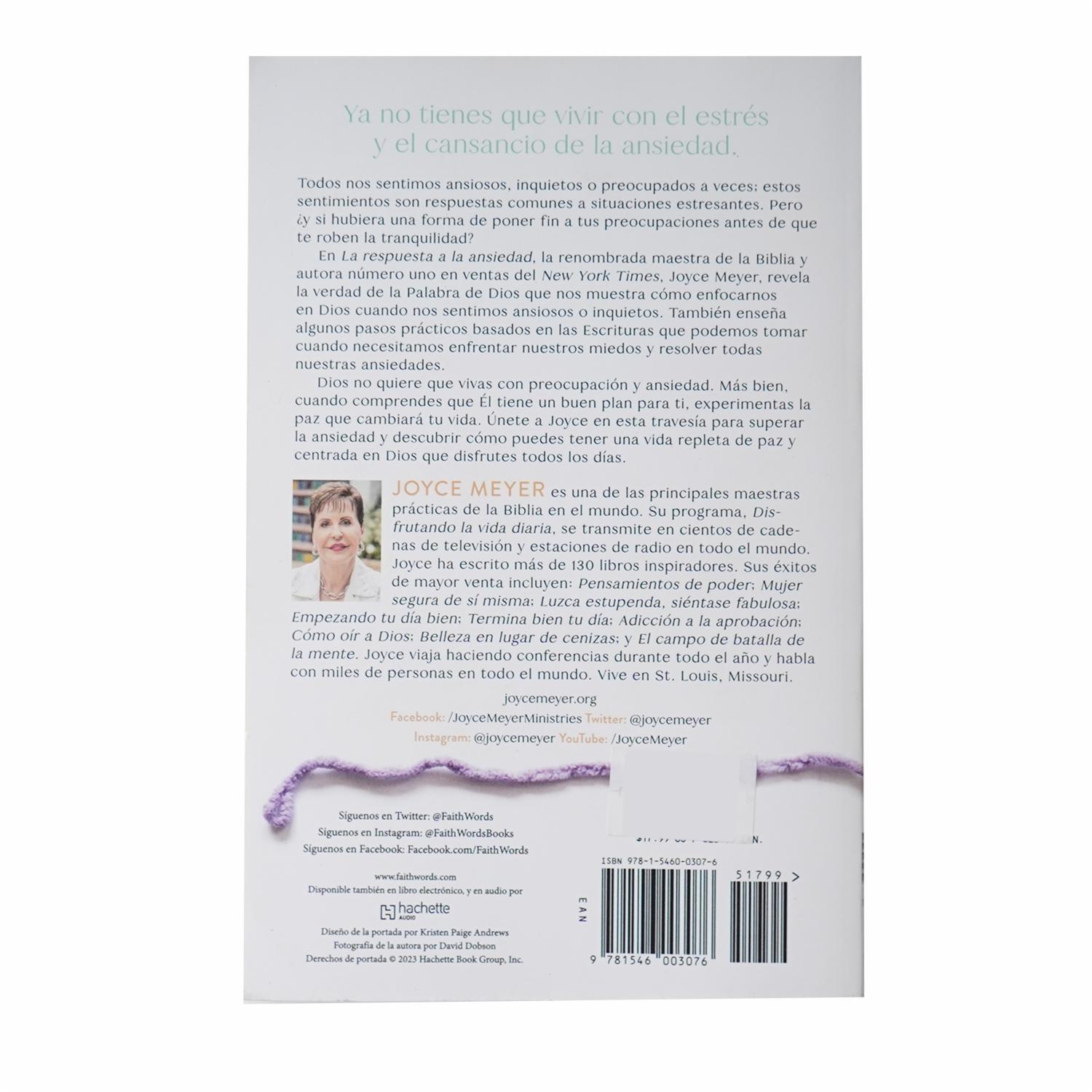 • En La respuesta a la ansiedad, la renombrada maestra de la Biblia y autora número uno en ventas del New York Times, Joyce Meyer, revela la verdad de la Palabra de Dios que nos muestra cómo enfocarnos en Dios cuando nos sentimos ansiosos o inquietos