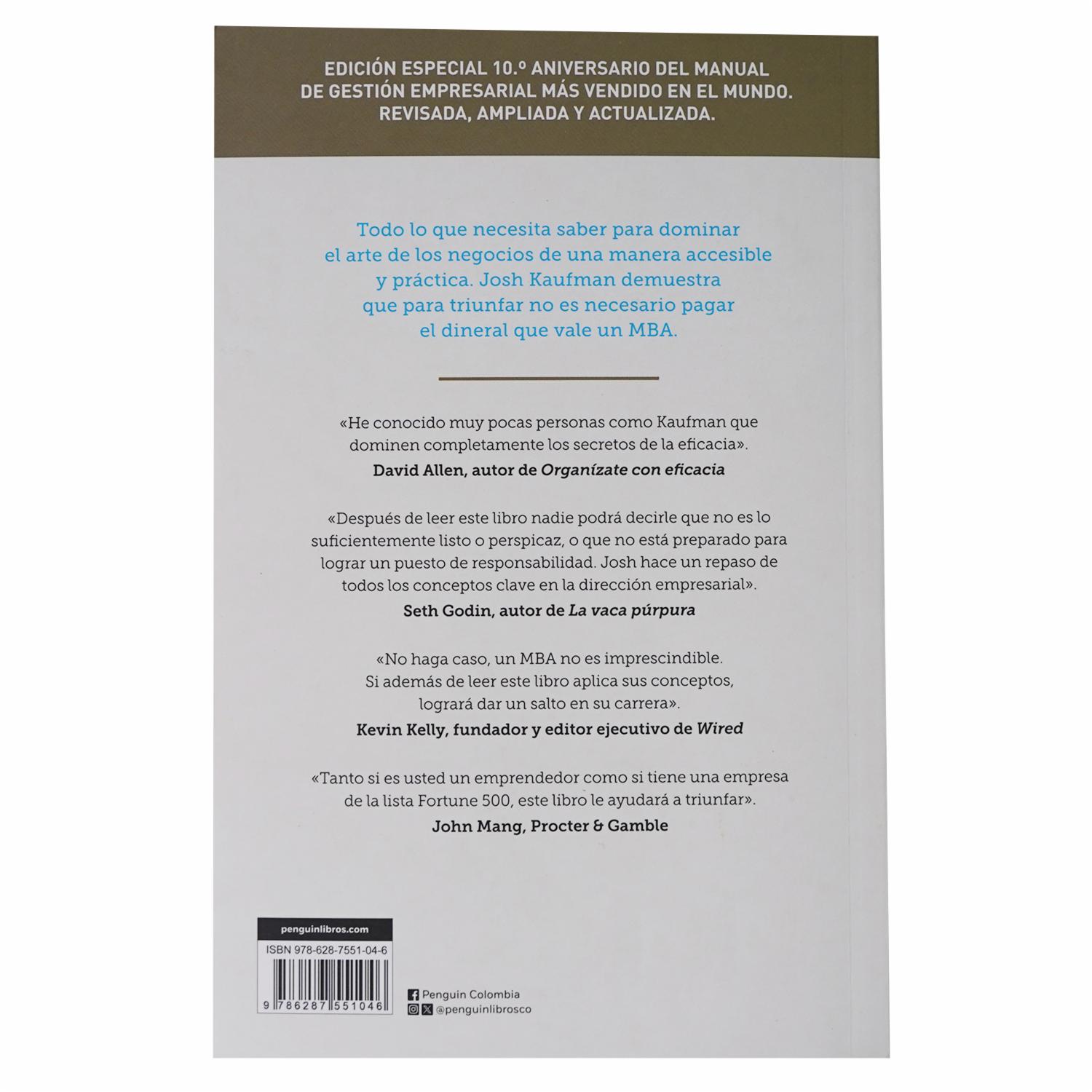 • La edición especial 10.° aniversario de MBA personal condensa los conceptos esenciales en todas las áreas de la gestión empresarial: emprendimiento, desarrollo del producto, marketing, ventas, negociación, contabilidad, finanzas, productividad, comunicación, psicología, liderazgo, diseño de sistemas, análisis y dirección de operaciones..