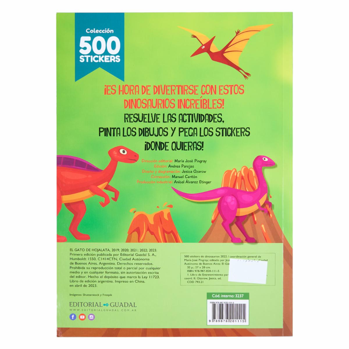 Libro 500 Stickers De Dinosaurios EL GATO DE HOJALATA 34 Páginas