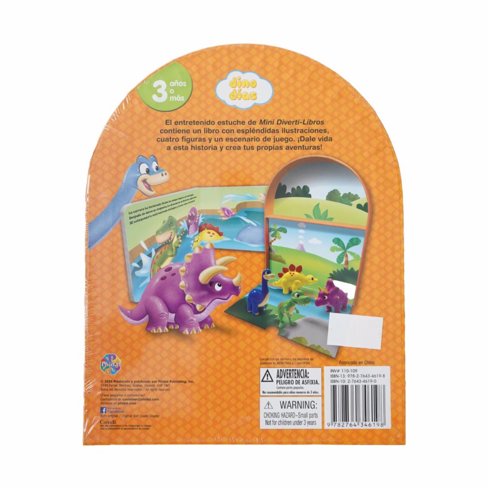 Los Mini Diverti-Libros incluyen un libro de cuentos bellame nte ilustrado, cuatro figuritas y un tablero de juego vertic al.Lee el libro y luego usa las figuritas y el tablero para cre ar historias nuevas y emocionantes!