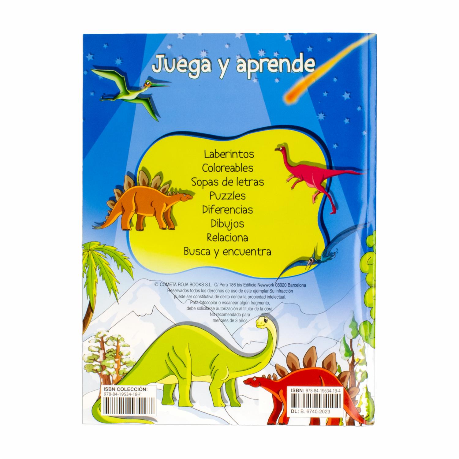 Juega con laberintos, colorea dibujos, haz sopas de letras, resuelve puzzles, juega a las diferencias, dibuja, relaciona conceptos, busca y encuentra mientras te diviertes con tus personajes favoritos: los dinosaurios