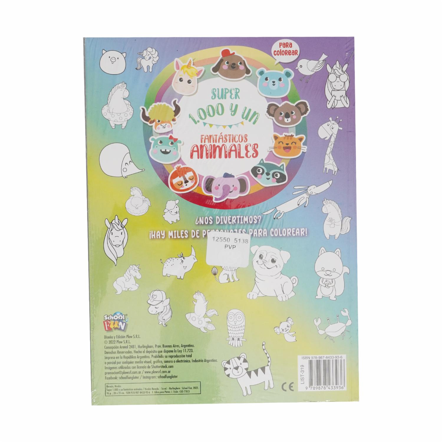Libro Para Colorear Súper 1000 Y Un Fantásticos Animales SCHOOL FUN 30 Páginas