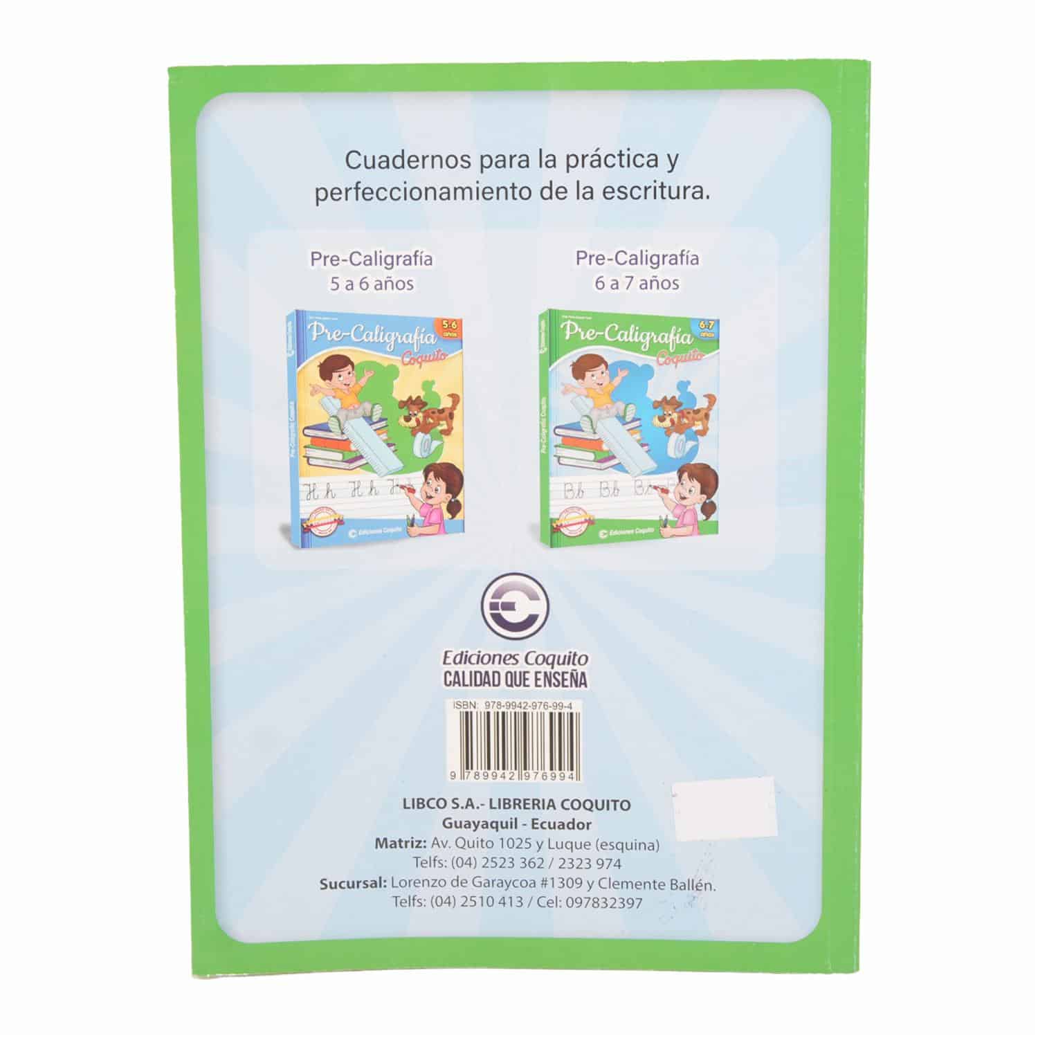 • El libro Pre Caligrafía 6-7 Anos Libro COQUITO tiene como características principales: