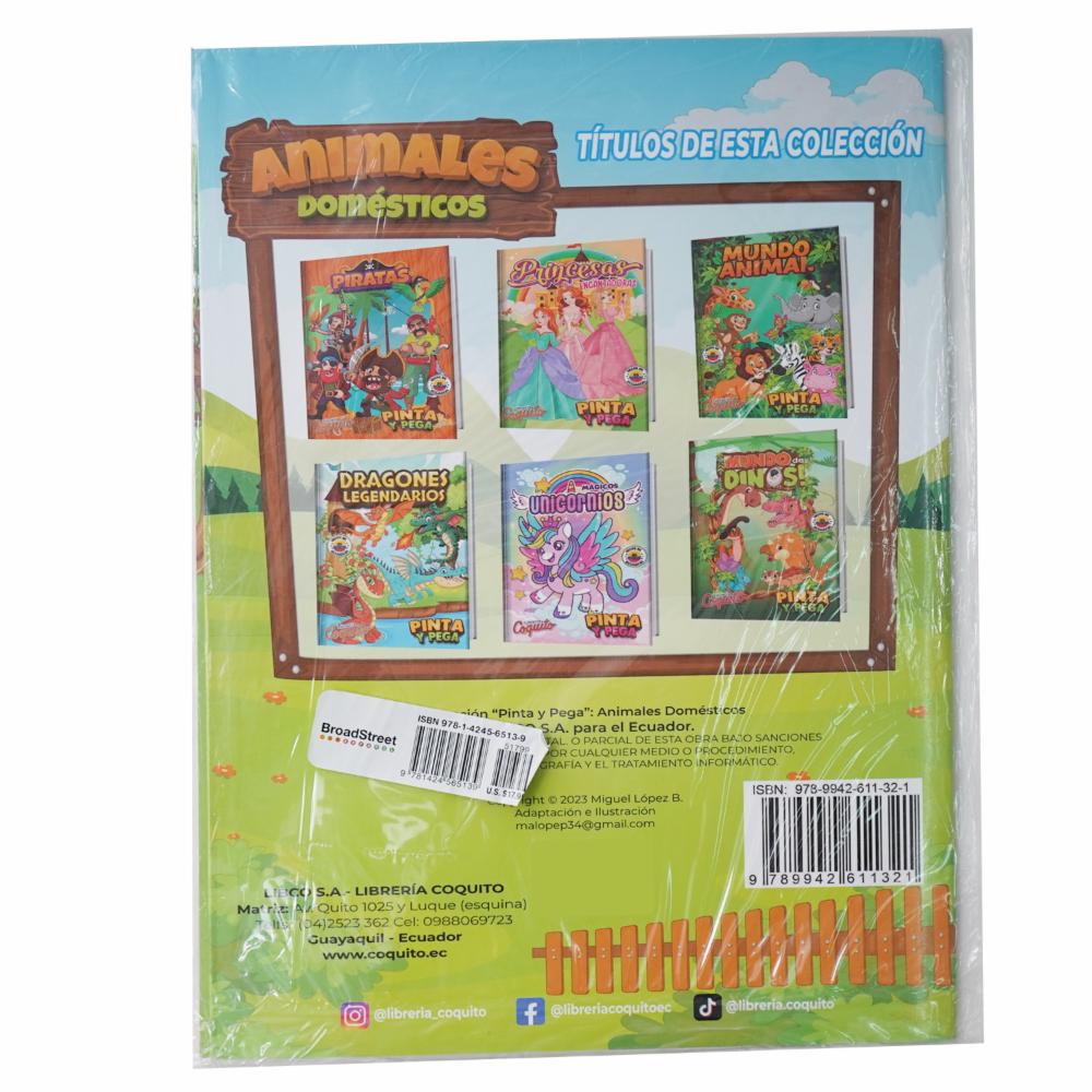 Libro Pinta Y Pega Animales Domésticos COQUITO 25 Páginas