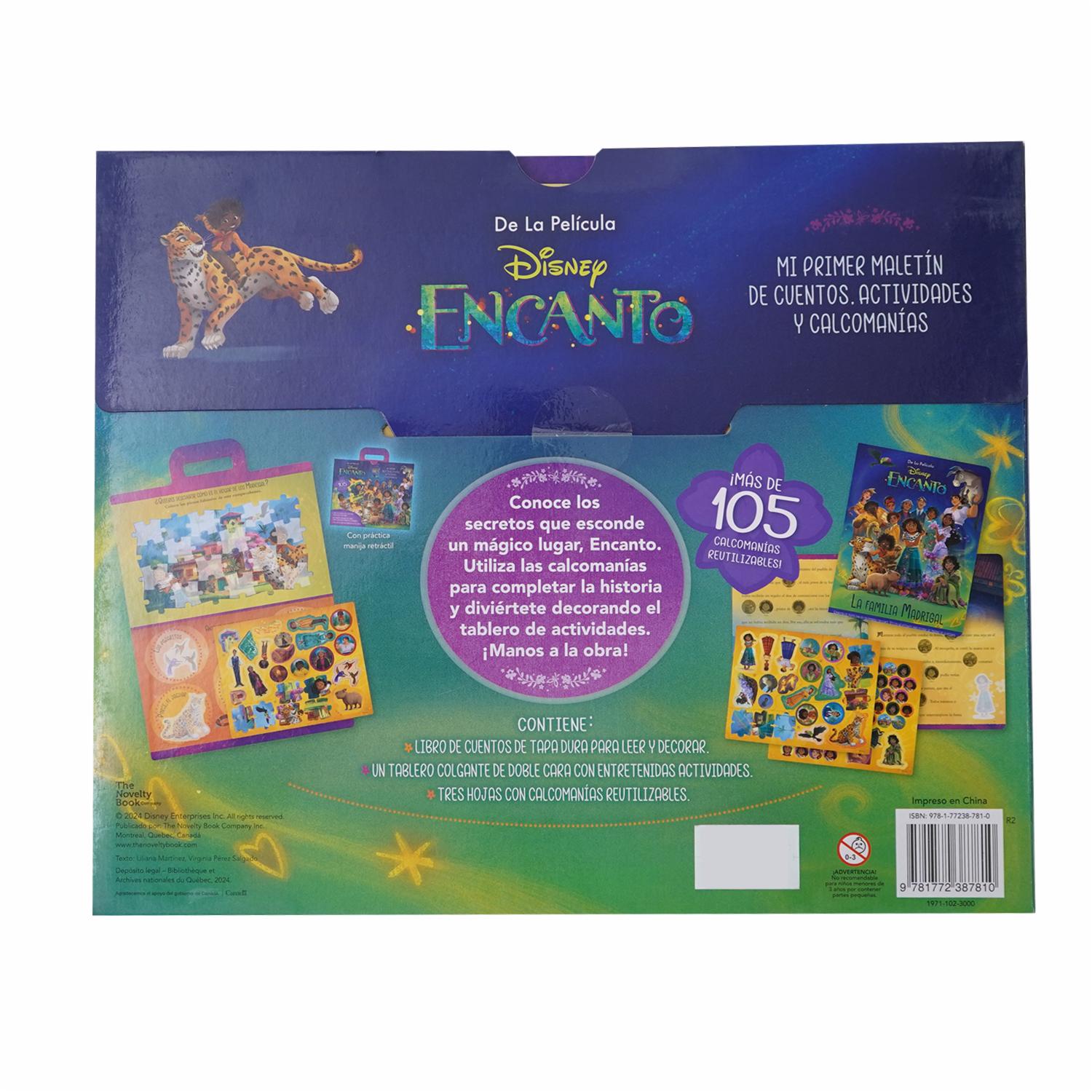 Conoce los secretos que esconde un mágico lugar, Encanto. Utiliza las calcomanías para completar la historia y diviértete decorando el tablero de actividades. ¡Manos a la obra! Contiene: Libro de cuentos de tapa dura para leer y decorar. Un tablero colgante doble cara con entretenidas actividades. Tres hojas con calcomanías reutilizables