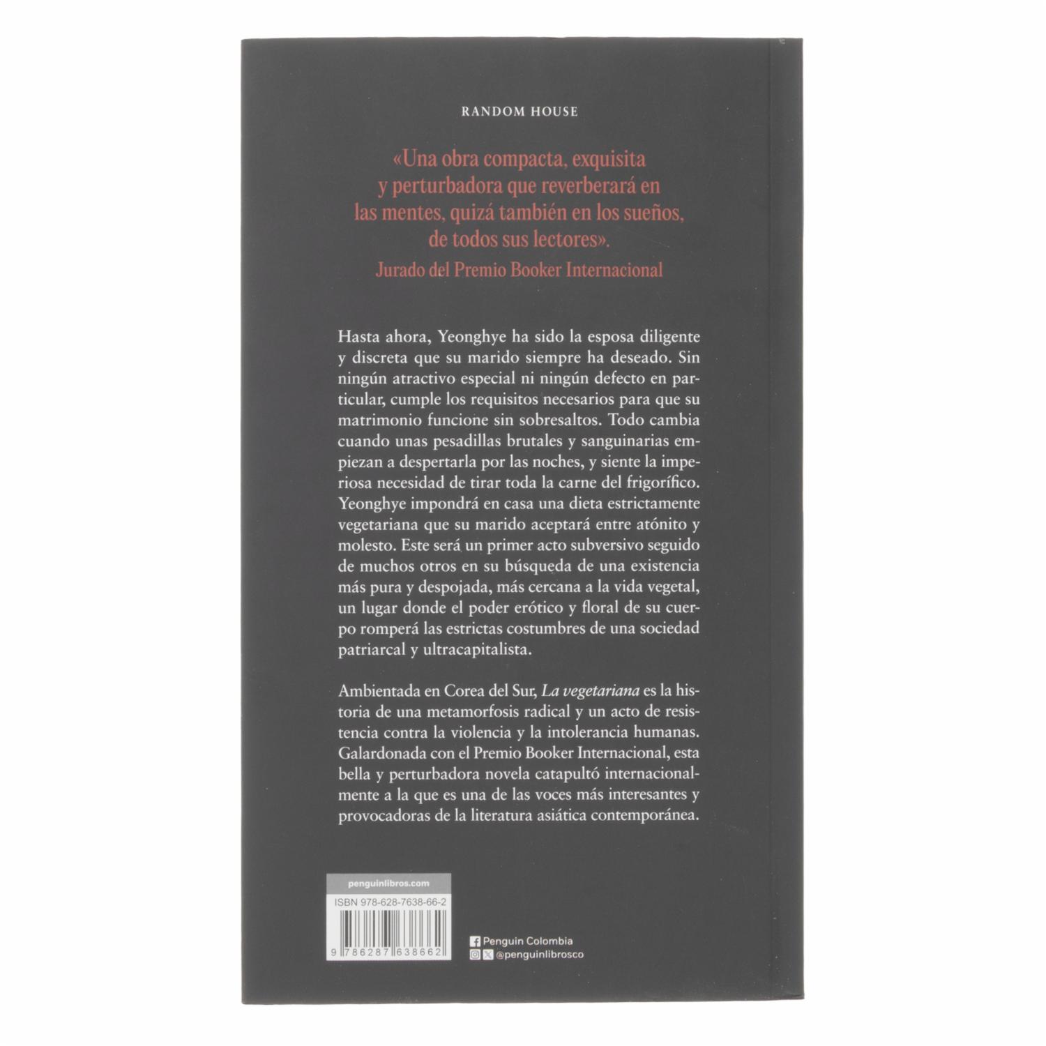 Es una novela perturbadora que narra la historia de Yeong-hye, una mujer surcoreana que, tras una serie de sueños inquietantes, decide dejar de comer carne. Esta decisión desencadena una serie de consecuencias inesperadas que alteran su vida y la de su entorno. La obra explora temas como la autonomía corporal, la represión social y la lucha por la identidad en una sociedad estrictamente normativa