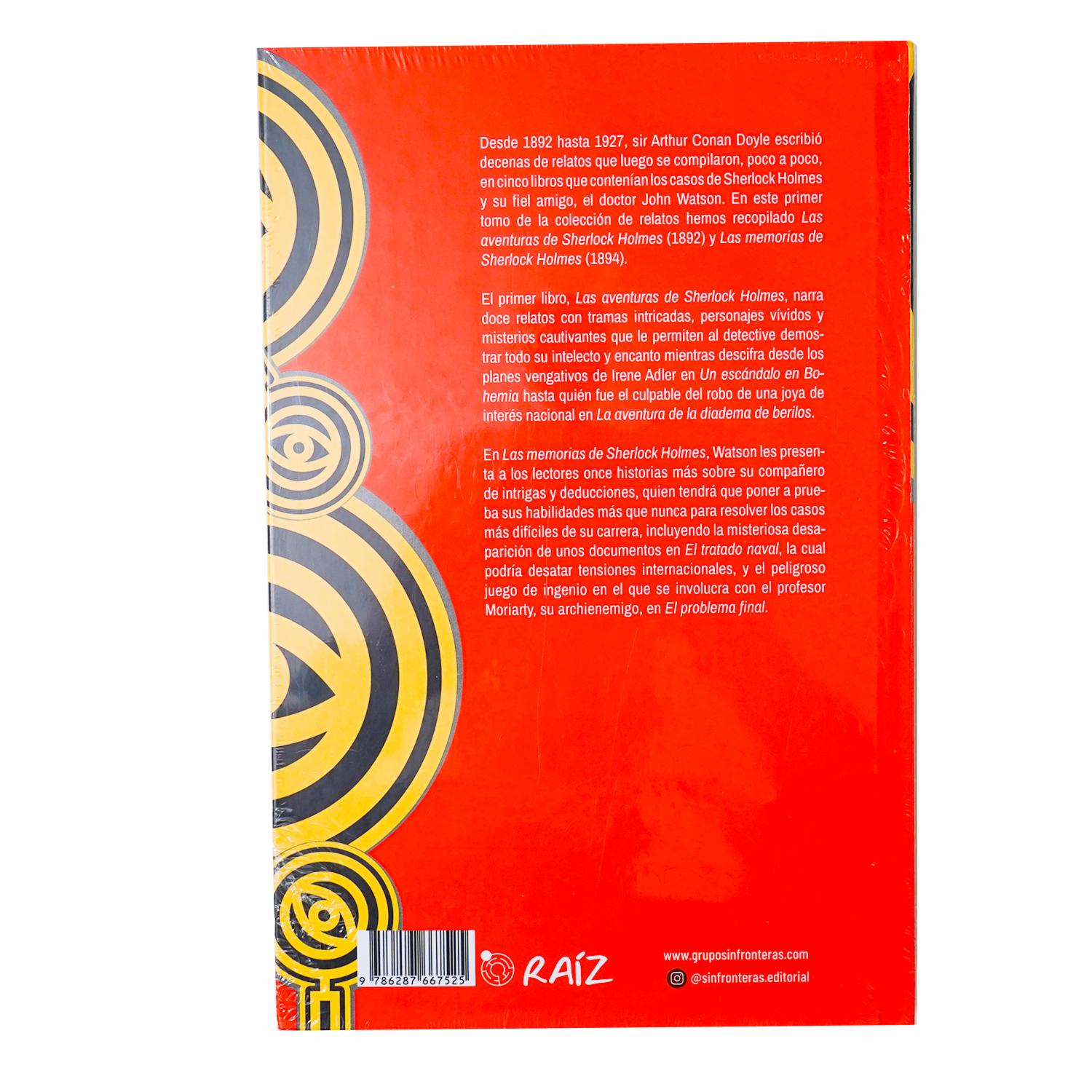 • Desde 1892 hasta 1927, sir Arthur Conan Doyle escribió decenas de relatos que luego se compilaron, poco a poco, en cinco libros que contenían los casos de Sherlock Holmes y su fiel amigo, el doctor John Watson. En este primer tomo de la colección de relatos hemos recopilado Las aventuras de Sherlock Holmes (1892) y Las memorias de Sherlock Holmes (1894)
