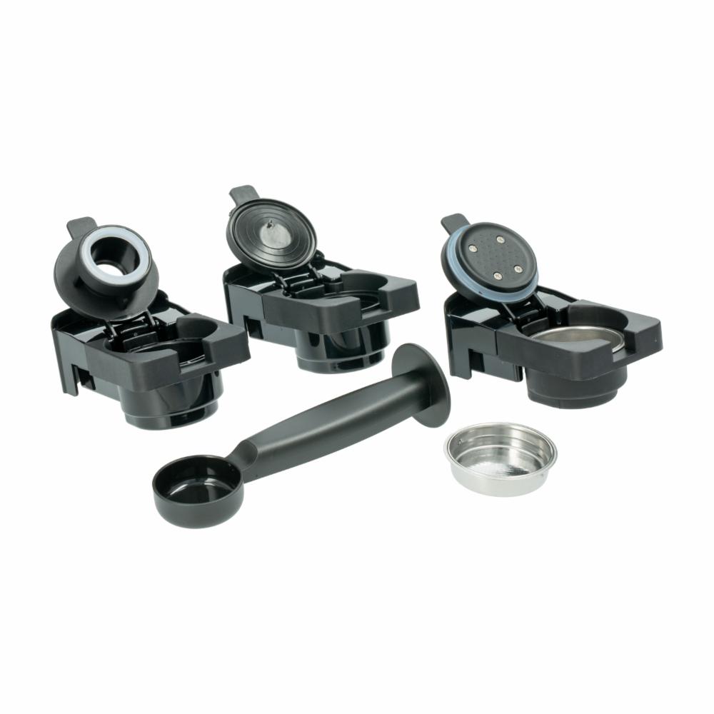 • Incluye: -Adaptador de café en polvo y monodosis. -Adaptador de capsula nespreso