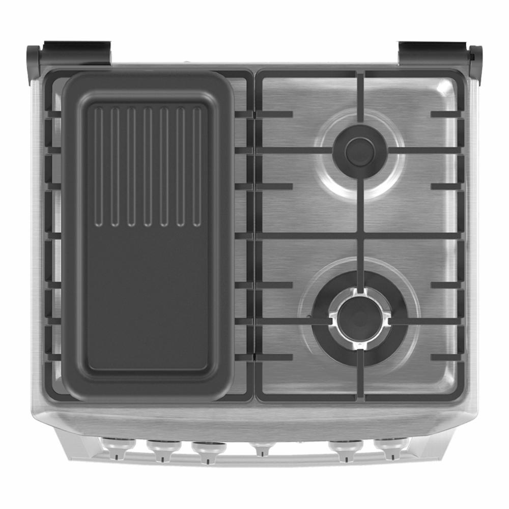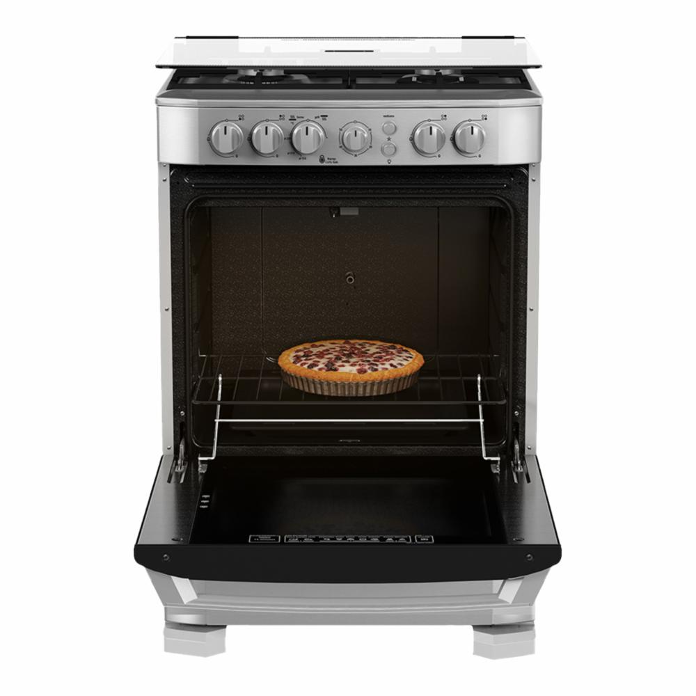 • 1 quemador Triple Ring (2.89 kW/h) 1 quemador Jumbo (2.5 kW/h) 2 quemadores estándar (1.44 kW/h) Horno y grill con válvula de seguridad Termocontrol y guía de cocción en contrapuerta