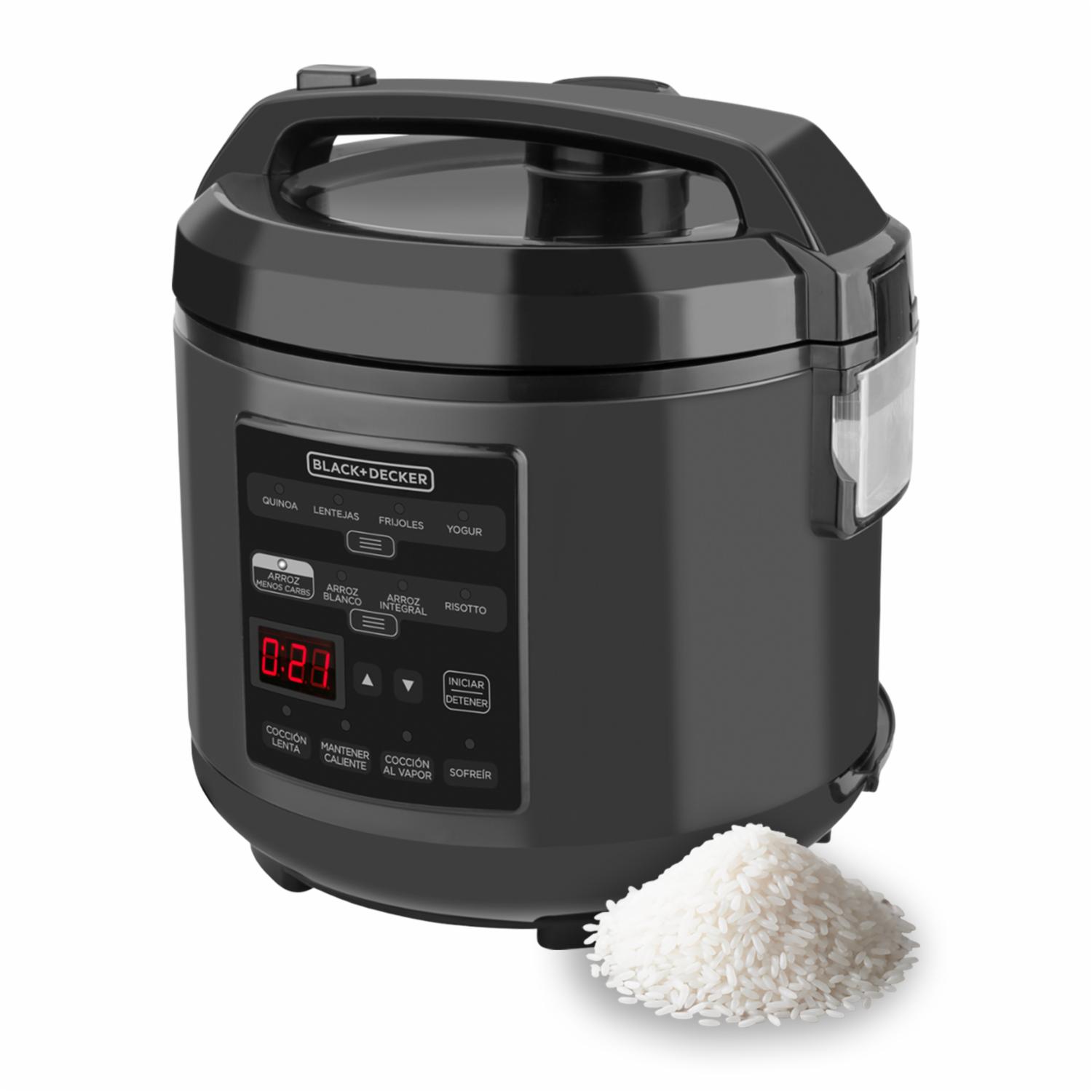 • La Olla Digital Multifunción de 3 L de BLACK+DECKER es la opción ideal para quienes buscan reducir carbohidratos sin sacrificar el sabor. Con su función especial de "Arroz Menos Carbs", puedes cocinar hasta 6 tazas de arroz con un 25% menos de carbohidratos