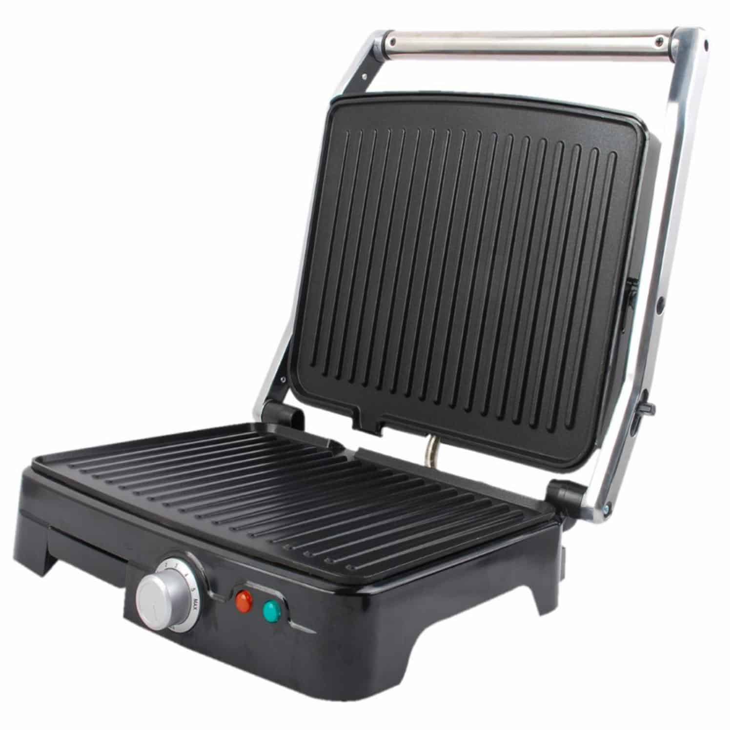 Características: - Cuerpo de metal - Sistema bisagra, apertura 180 grados - Deposito de grasa - El revestimiento antiadherente un mínimo de uso de aceite en todo tipo de frituras - Potencia 1800 watts - Para preparar sanduches, asar carnes, pollo, etc
