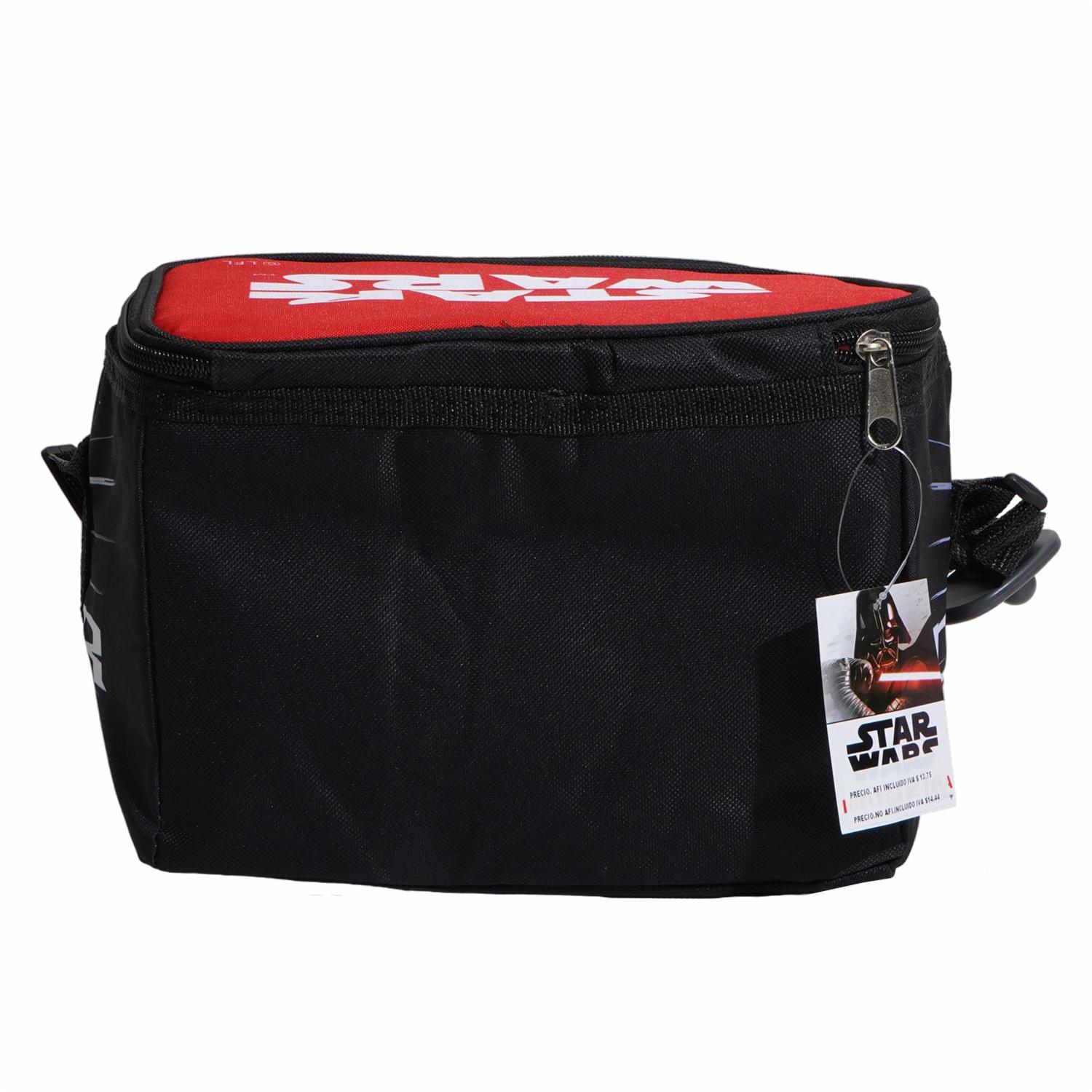 • Características - Tamaño de 24.5x17 cm, ideal para lonche y snacks - Diseño exclusivo de Darth Vader, perfecto para fanáticos de Star Wars - Material térmico que mantiene la temperatura de los alimentos - Asa para fácil transporte - Cierre con cremallera para seguridad - Ligera y fácil de limpiar - Ideal para niños, perfecto para la escuela o excursiones