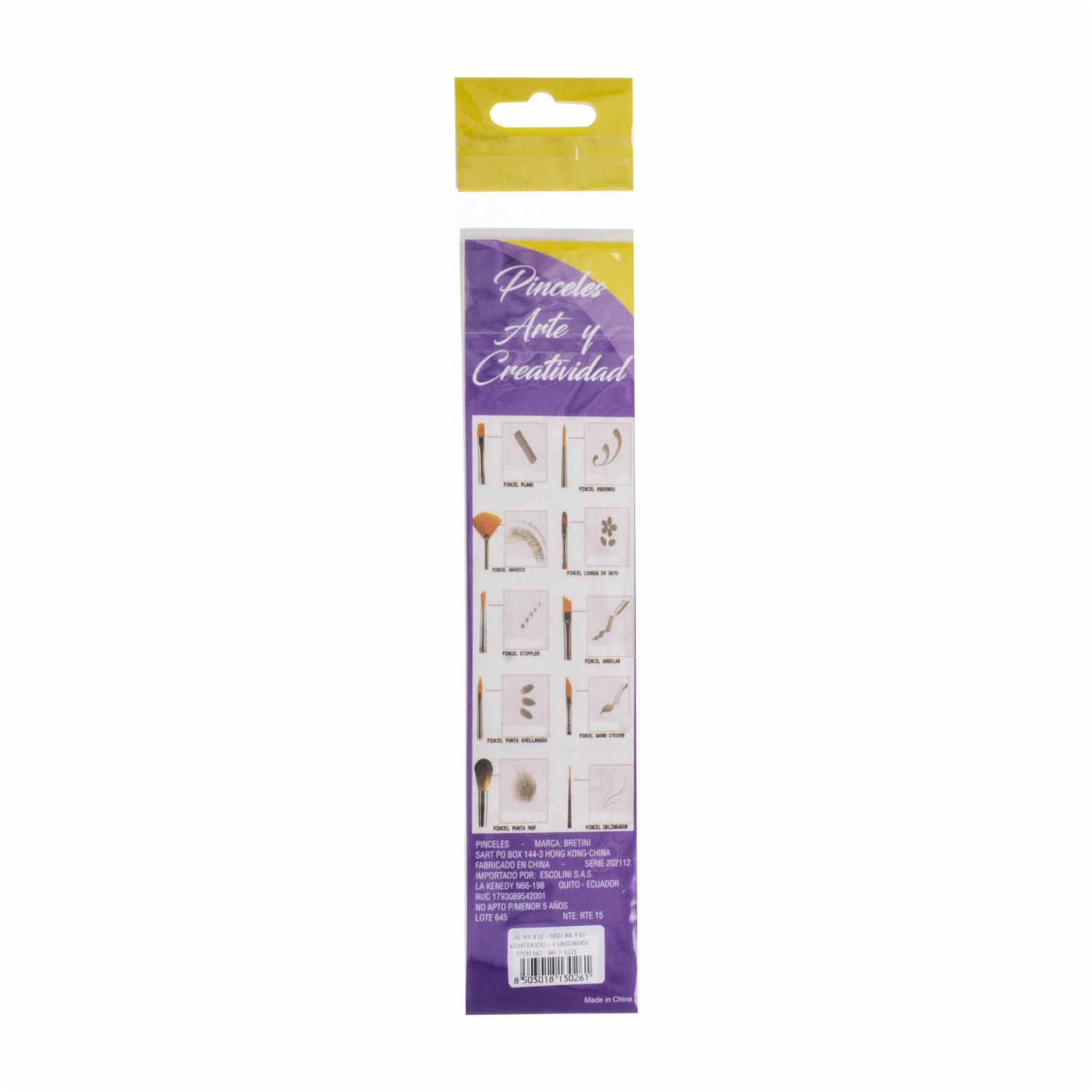 • El set de pinceles N.4, N.6, N.10 y N.16 es ideal para diversas aplicaciones artísticas