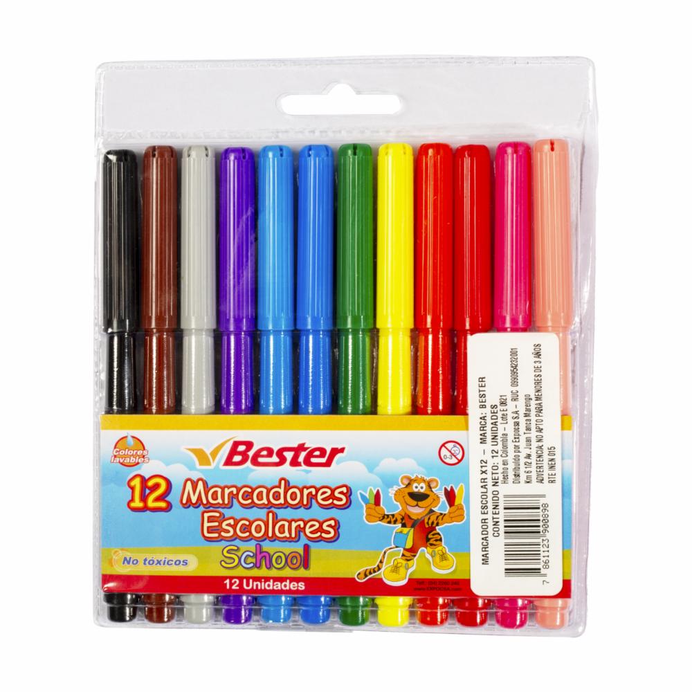 Marcador Escolar BESTER X 12 Uds – BESTER. Disponible en nuestros locales. Precio y stock pueden variar según la tienda.