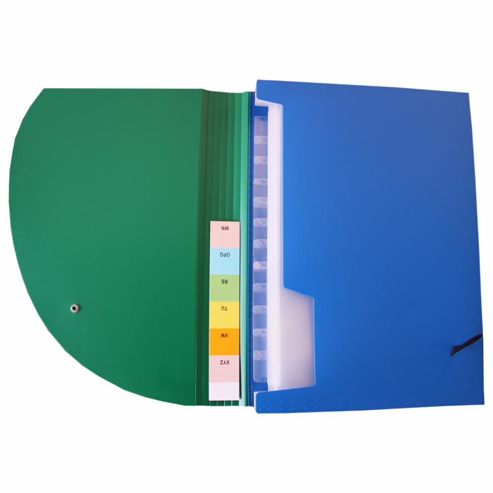 Archivador Tipo Acordeon De 13 Divisiones Con Elastico Dos Colores. Contiene Un Indice Alfabetico En Su Interior Para Ubicarlo En Las Pestañas
