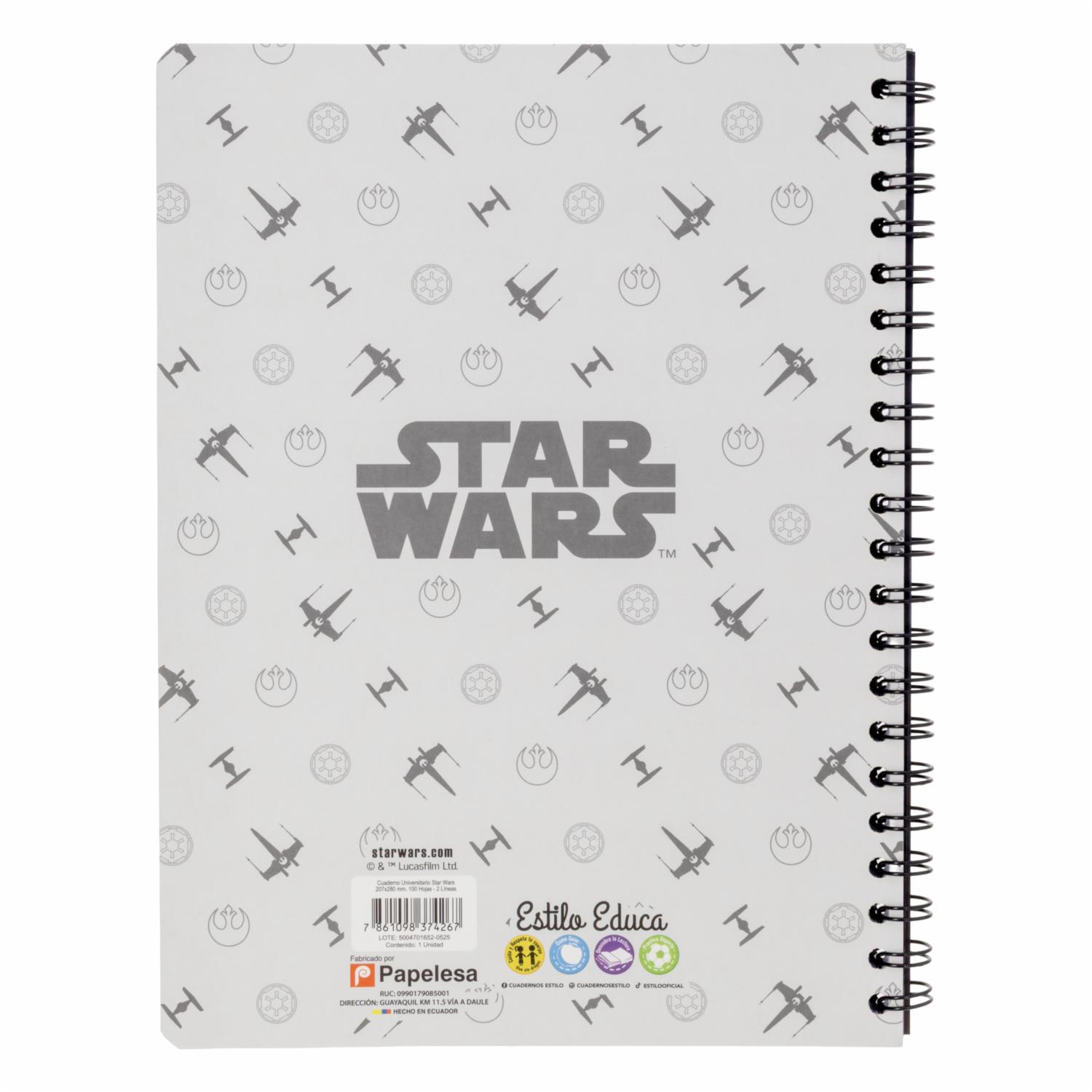 Cuaderno Universitario 2 Líneas Star Wars DISNEY 100 Hojas