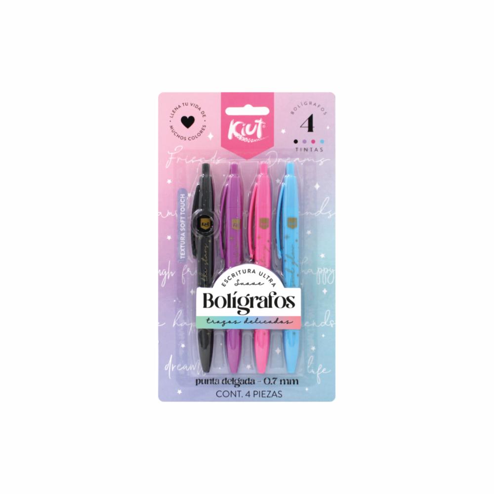 Blíster Bolígrafos De Colores KIUT X 4 Uds – KIUT. Disponible en nuestros locales. Precio y stock pueden variar según la tienda.