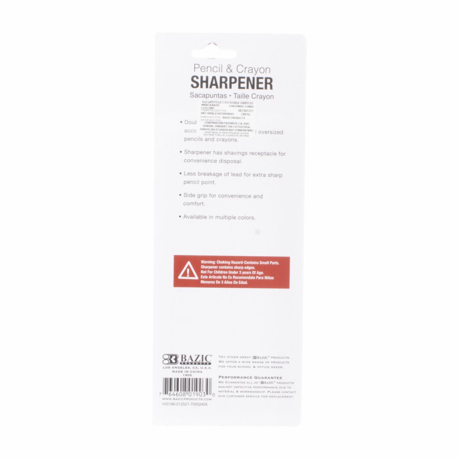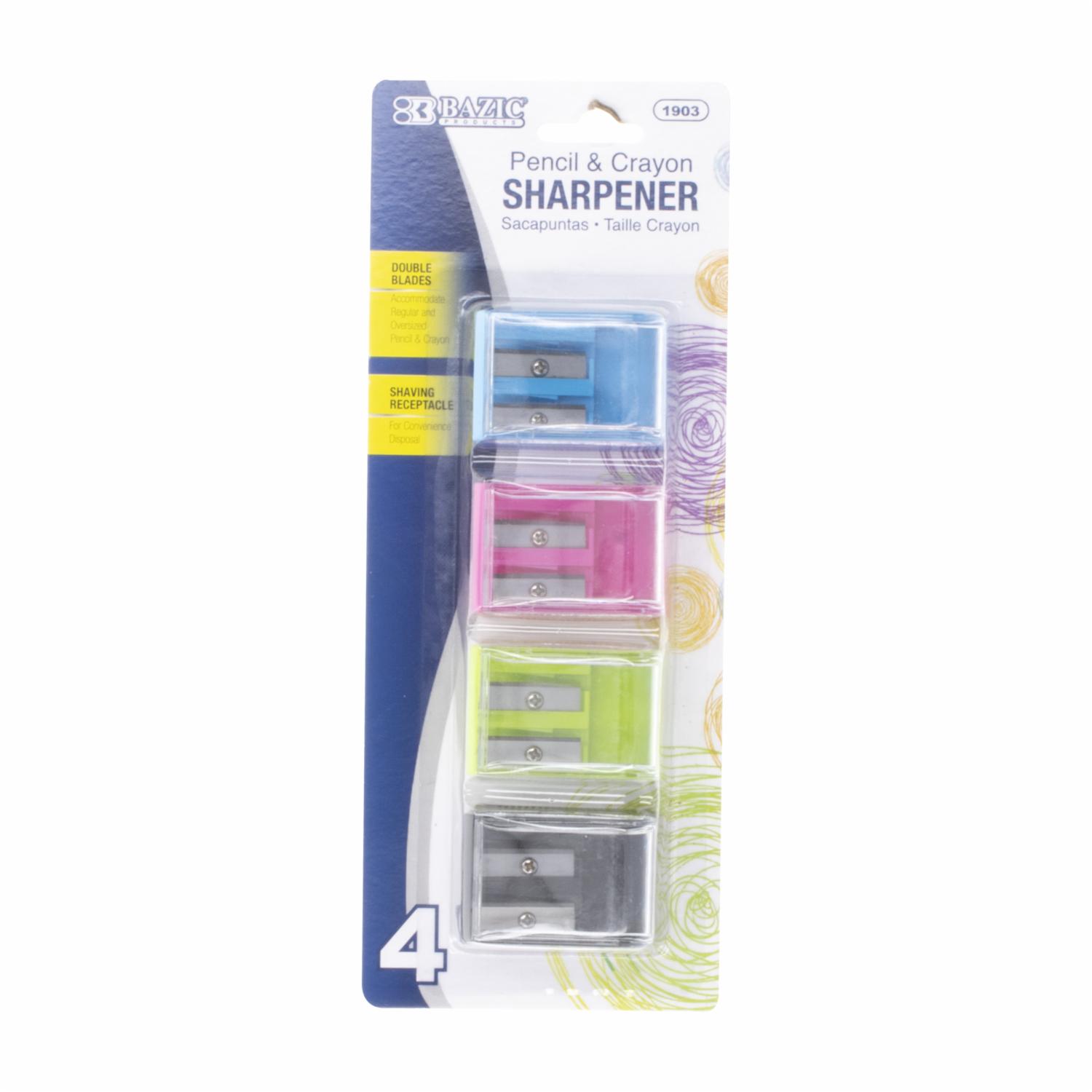 El sacapuntas Bazic de doble orificio, con su diseño cuadrado y mini depósito integrado, es una herramienta conveniente y compacta para mantener tus lápices afilados en cualquier lugar