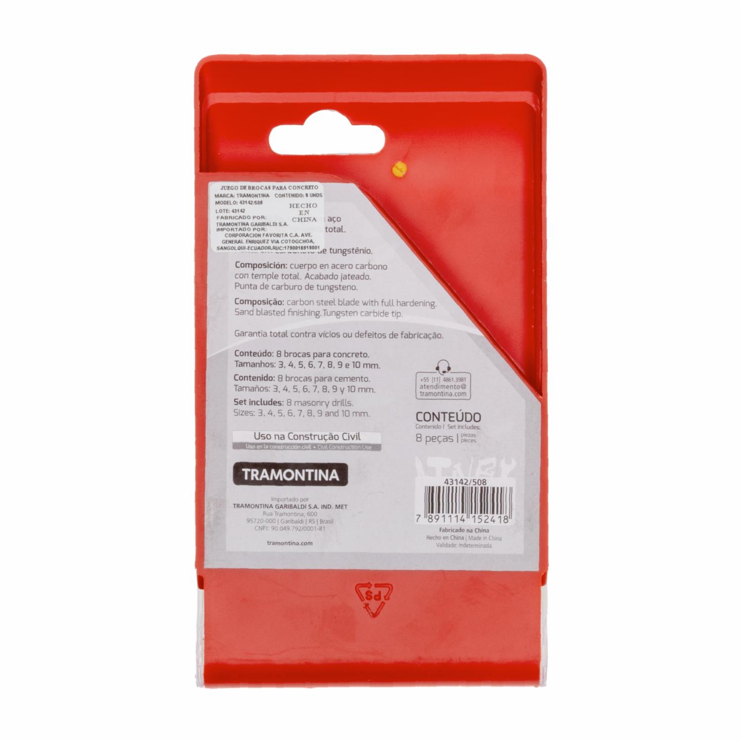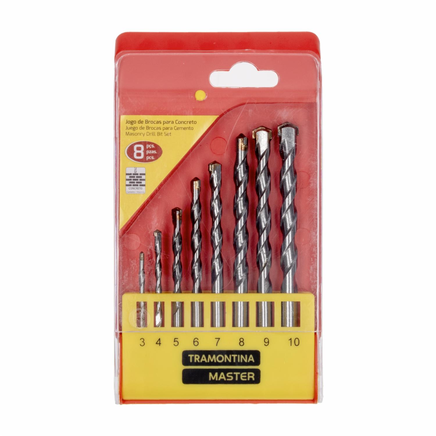 • Descubre nuestro pack de 8 brocas de taladro TRAMONTINA, diseñadas específicamente para perforar hormigón y materiales similares con precisión y eficacia
