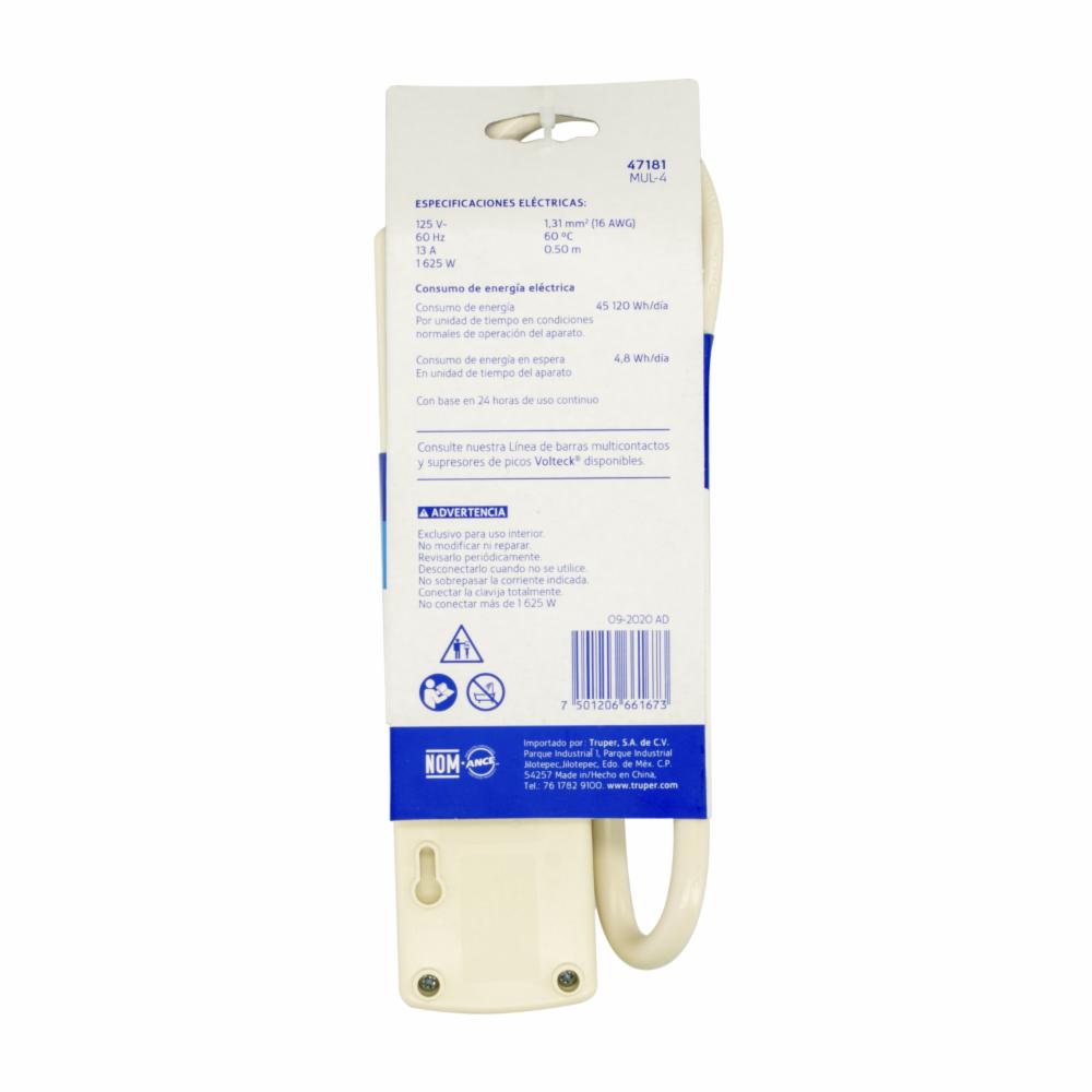 Regleta De 4 Tomas VOLTECK Unidad – VOLTECK. Disponible en nuestros locales. Precio y stock pueden variar según la tienda.